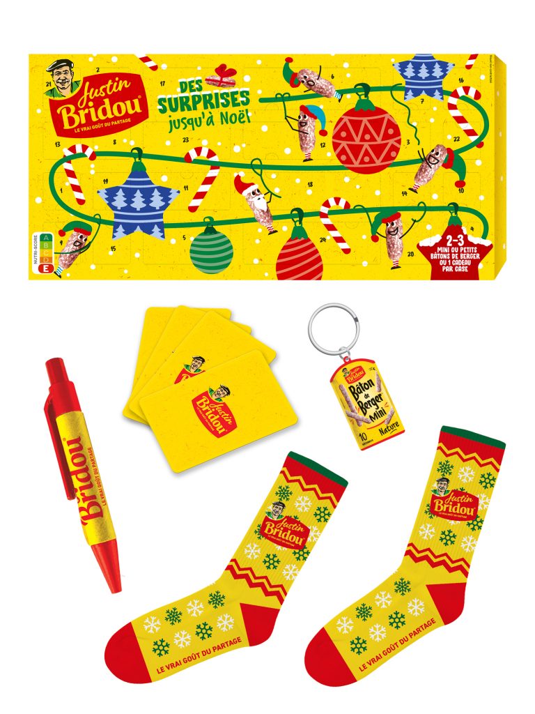 Justin Bridou joue la carte du salé avec ses Bâtons de Berger glissés dans les cases, entre recettes épicées, surprises à collectionner et accessoires inattendus pour les apéros d’hiver.