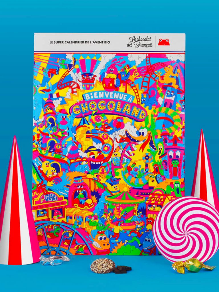 Le Chocolat des Français livre un florilège sucré dans un style graphique bien à lui. Tablettes, oursons et truffes se succèdent, tous certifiés bio et fabriqués en France.