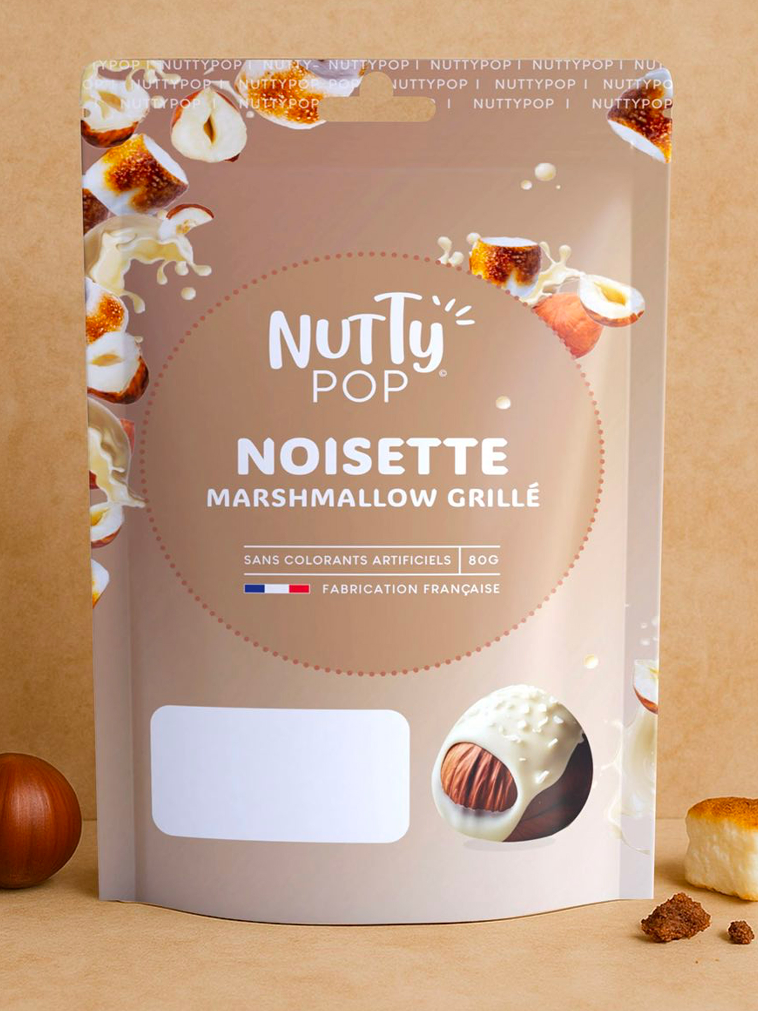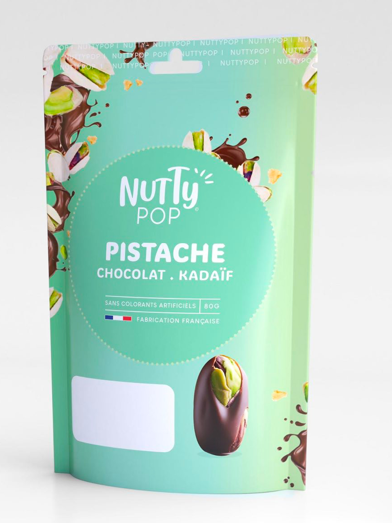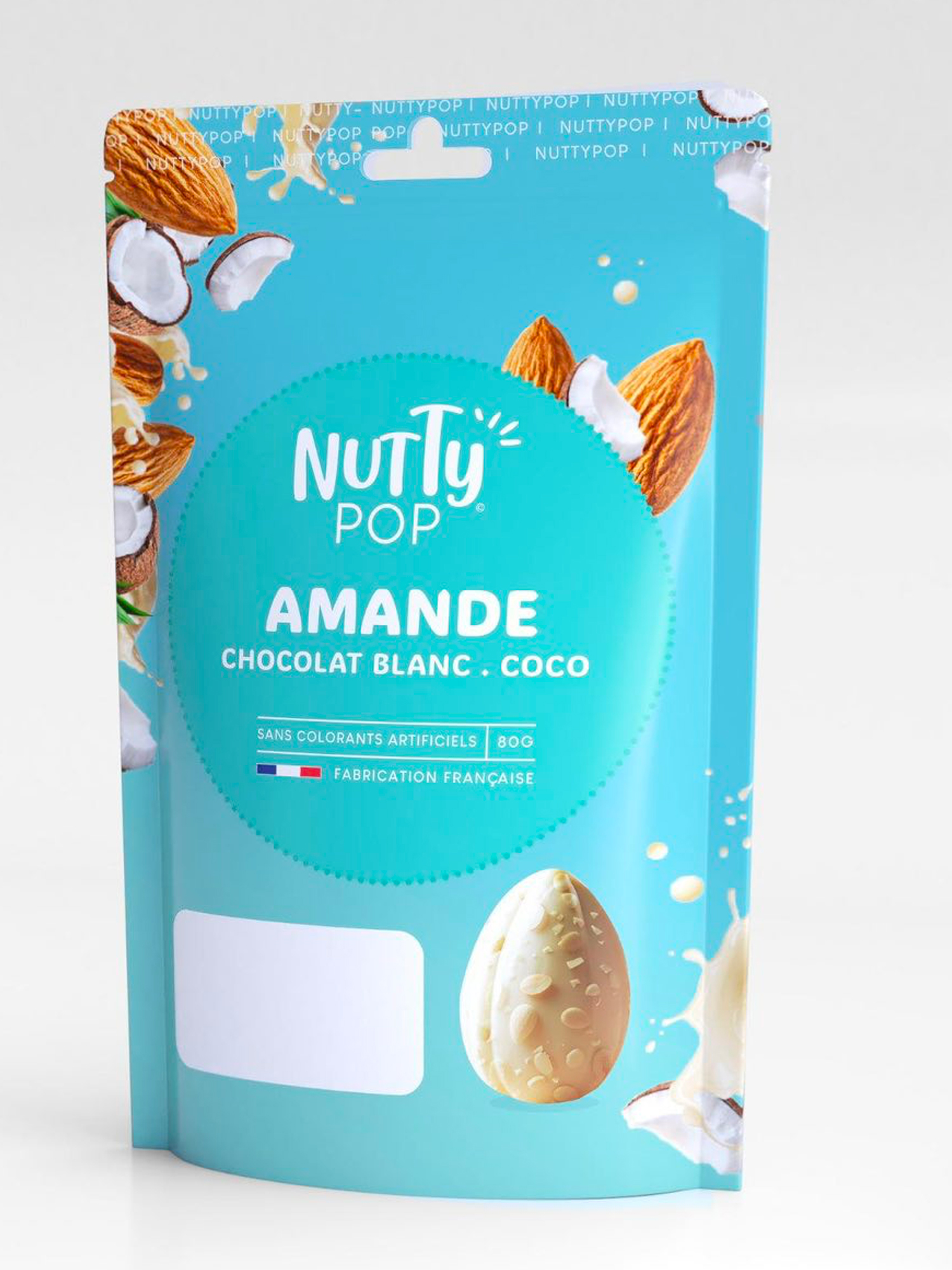 Nutty Pop trace sa route dans l’univers des douceurs chocolatées avec une collection de fruits secs enrobés, travaillés en France, aux associations aussi audacieuses que régressives.
