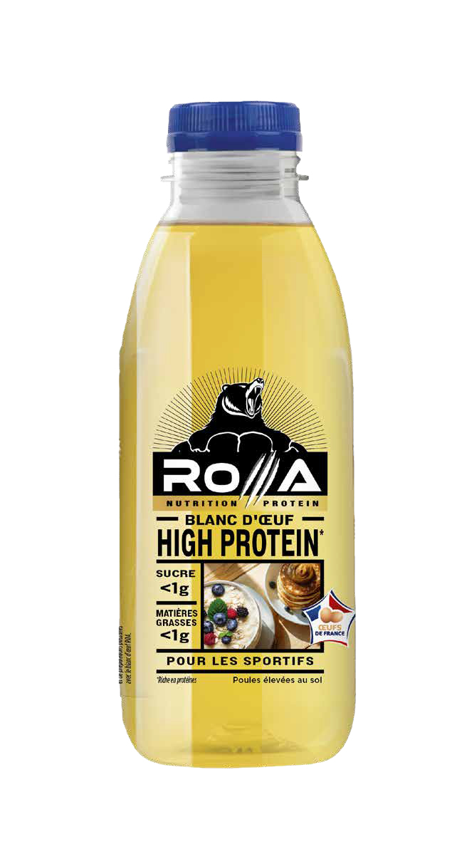 D’un côté, la marque dédiée RoA s’adresse aux adeptes de nutrition sportive avec un blanc d’œuf liquide en bouteille de 500 ml, soit l’équivalent de 16 blancs.