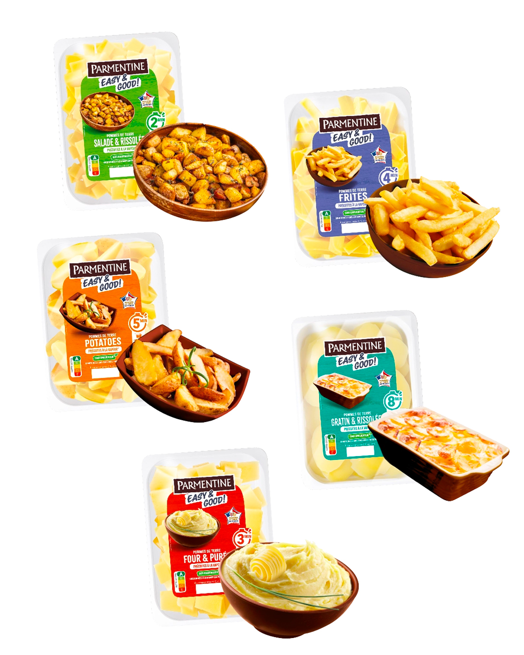 Même logique pour les rondelles destinées au gratin ou à la poêle, ainsi que pour les Potatoes, version plus généreuse et décontractée, qui ciblent les repas conviviaux.