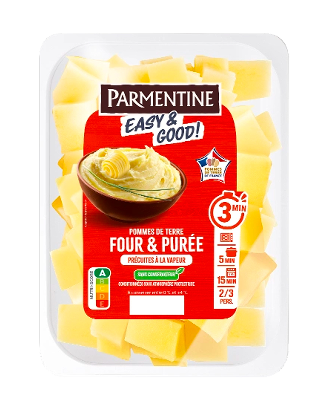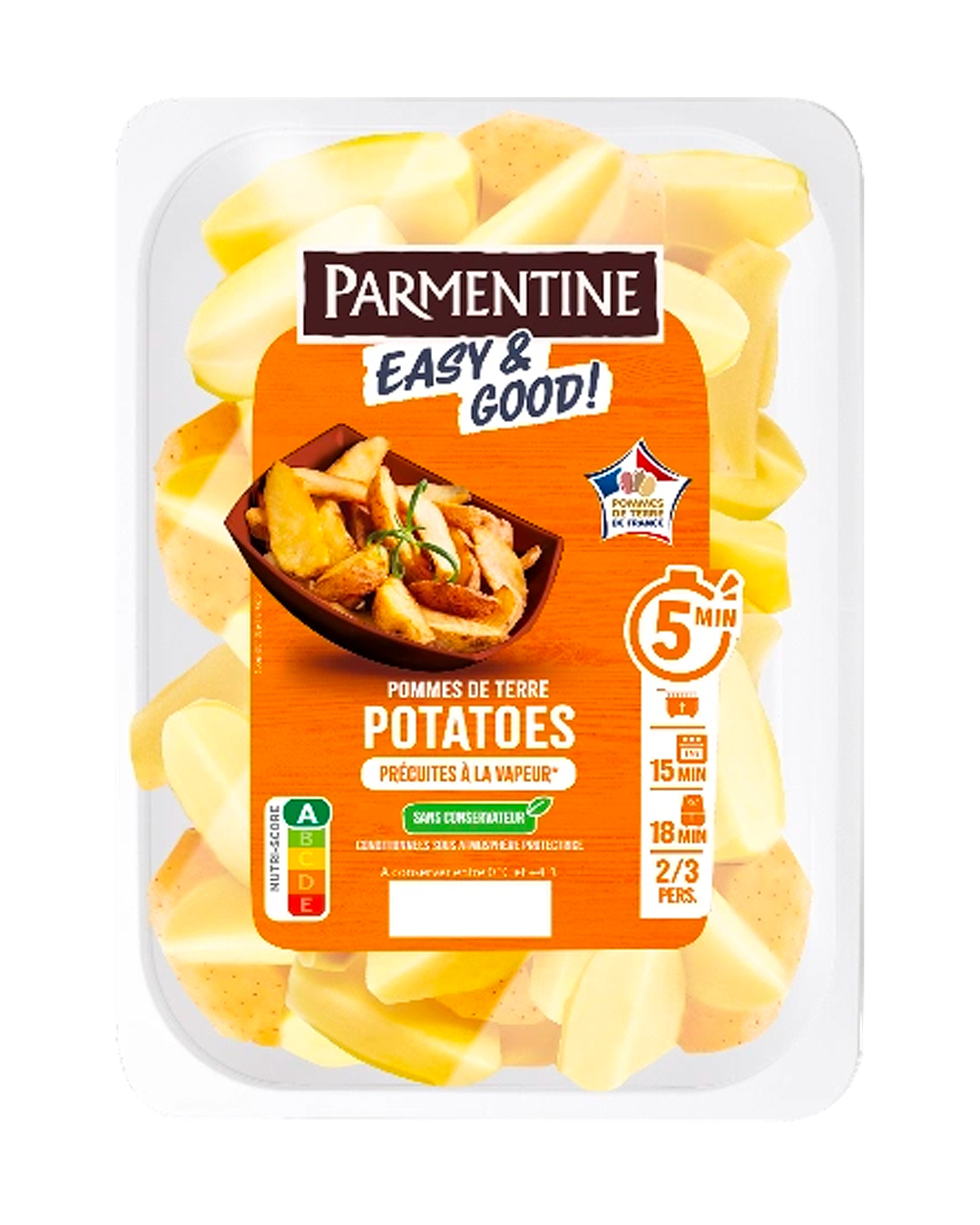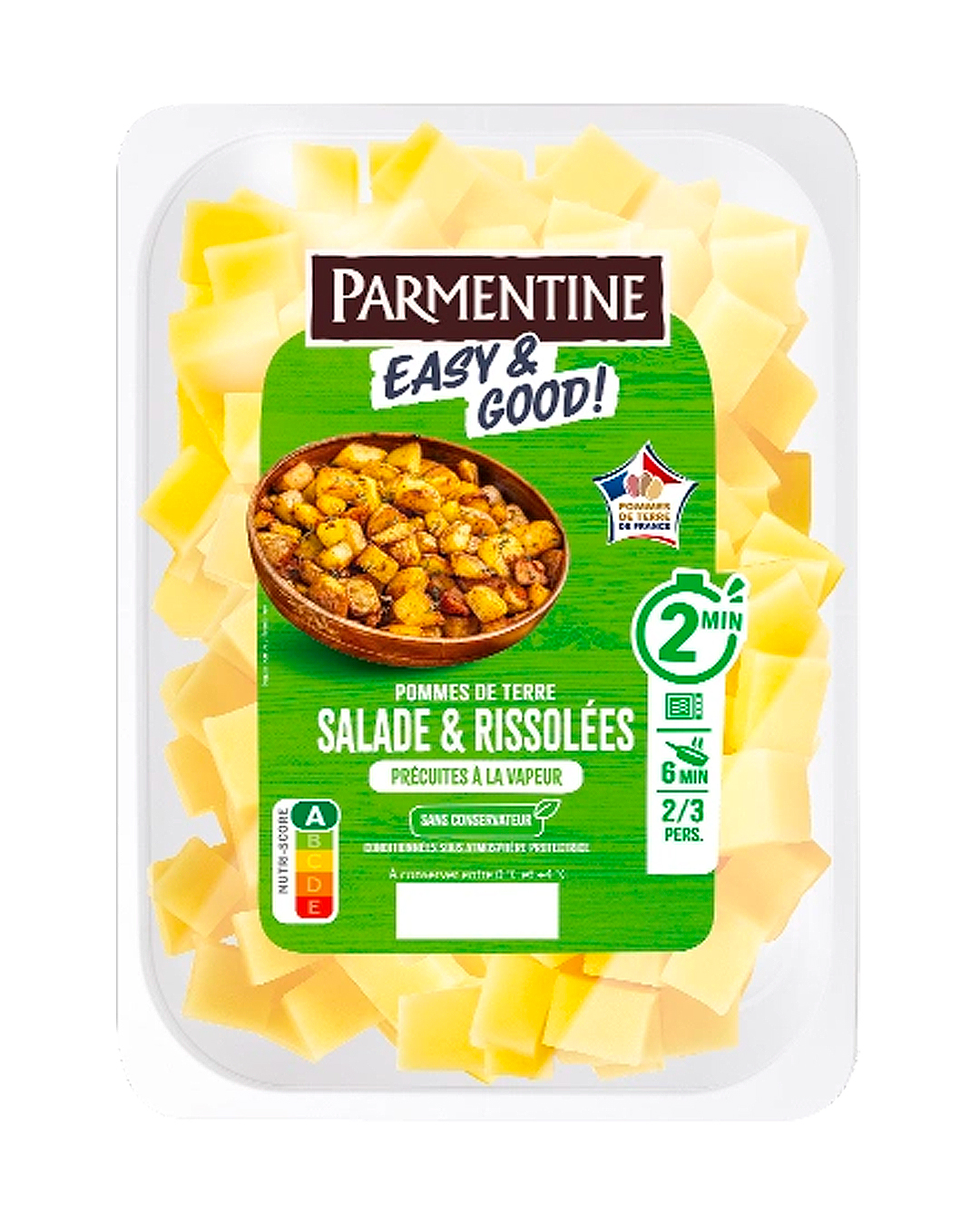 Déjà précuites à la vapeur, les pommes de terre sont proposées en différentes découpes, prêtes à intégrer les recettes du quotidien.