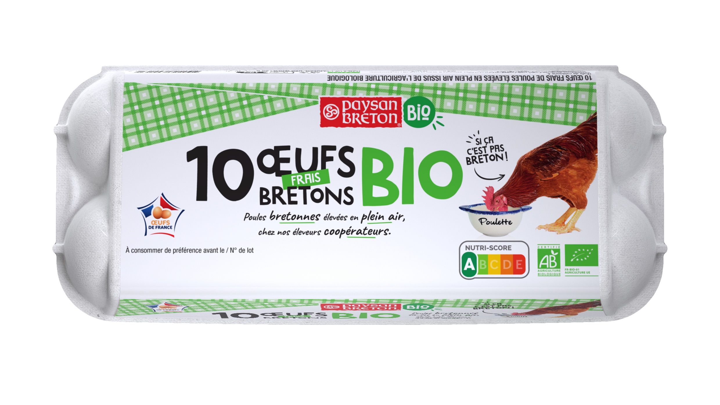 La marque coopérative Paysan Breton, déjà présente aux rayons crèmerie, crêpes et surgelés, poursuit son développement en proposant une gamme de 4 références d’œufs issus des productions de ses éleveurs- coopérateurs bretons. La gamme se compose de 2 références d’oeufs Plein air (code 1) par 6 et par 12 et de 2 références d’oeufs Bio (code 0) par 6 et par 10, tous labellisés “Oeufs de France”.
