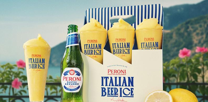 Peroni Nastro Azzurro surprend cet été aux États-Unis avec Peroni Italian Beer Ice, une création glacée au goût citronné et légèrement alcoolisée, conçue avec la cheffe italo-américaine Giada De Laurentiis et la marque new-yorkaise Tipsy Scoop.