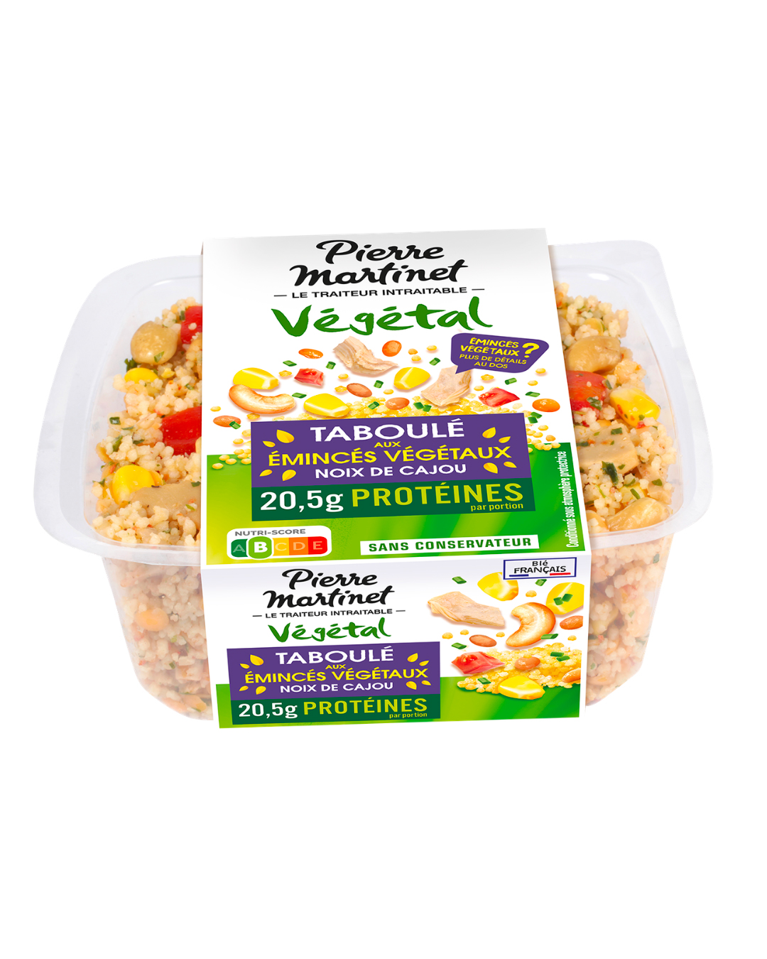 Pierre Martinet s’inscrit dans la montée en puissance des alternatives végétales avec un taboulé intégrant des émincés végétaux saveur poulet rôti.