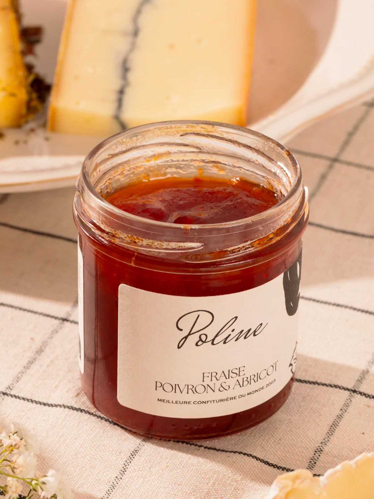 La confiture qui ne ressemble à aucune autre fait son retour. Chez Poline, la combinaison fraise, poivron et abricot reprend du service, toujours aussi déroutante et séduisante.