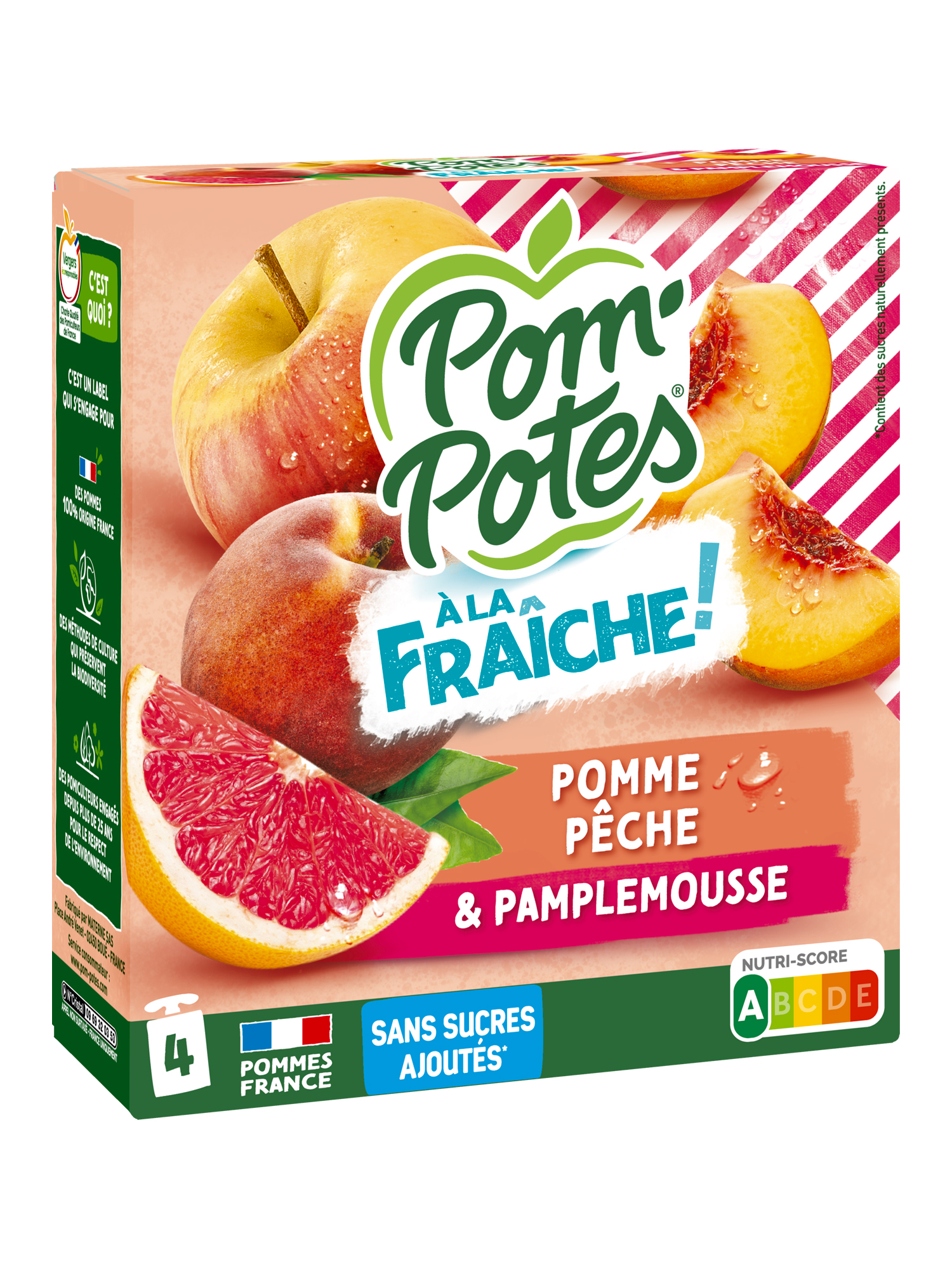 Quatre recettes mariant pommes et agrumes s’invitent au rayon ambiant : pomme, framboise & citron vert, pomme, pêche & pamplemousse, pomme, ananas & orange sanguine et pomme, citron & menthe.