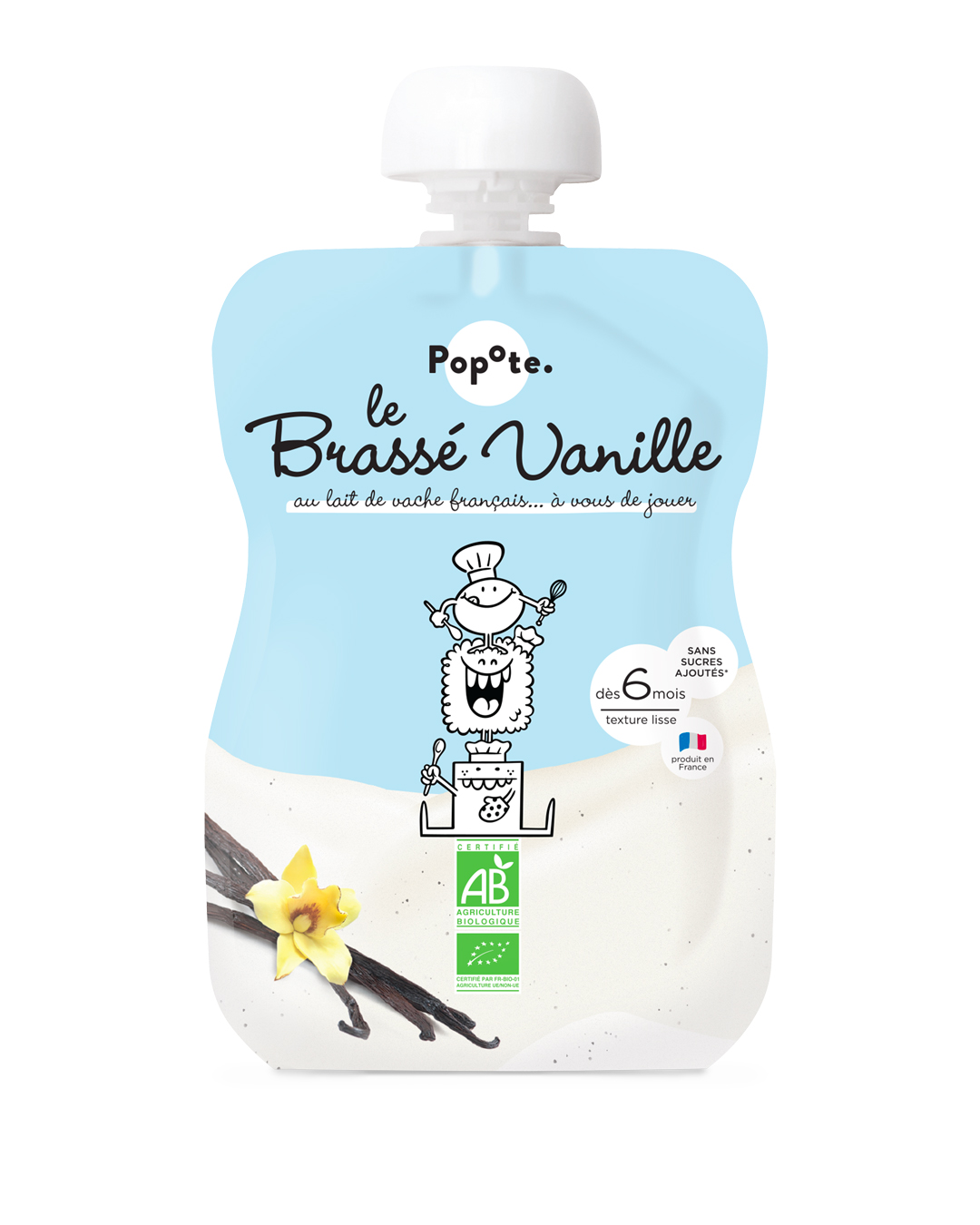 Dès la rentrée 2025, un brassé vanille au lait de vache fait son apparition dans la gamme. Élaboré sans sucres ajoutés, ce dessert à la vanille de Madagascar se présente en gourde de 100 g, pratique pour une consommation autonome, dès 6 mois.
