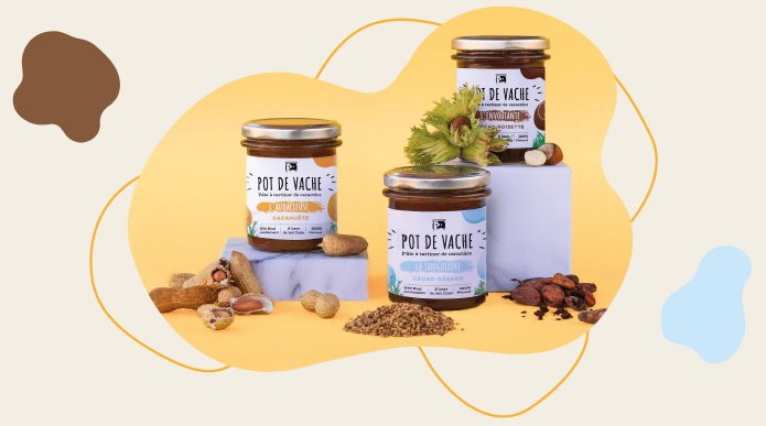 Le secret de Pot de Vache c’est l’utilisation du lait comme ingrédient principal. Il représente la moitié de la composition de leurs pâtes à tartiner. Du lait 100% français, bien sûr !