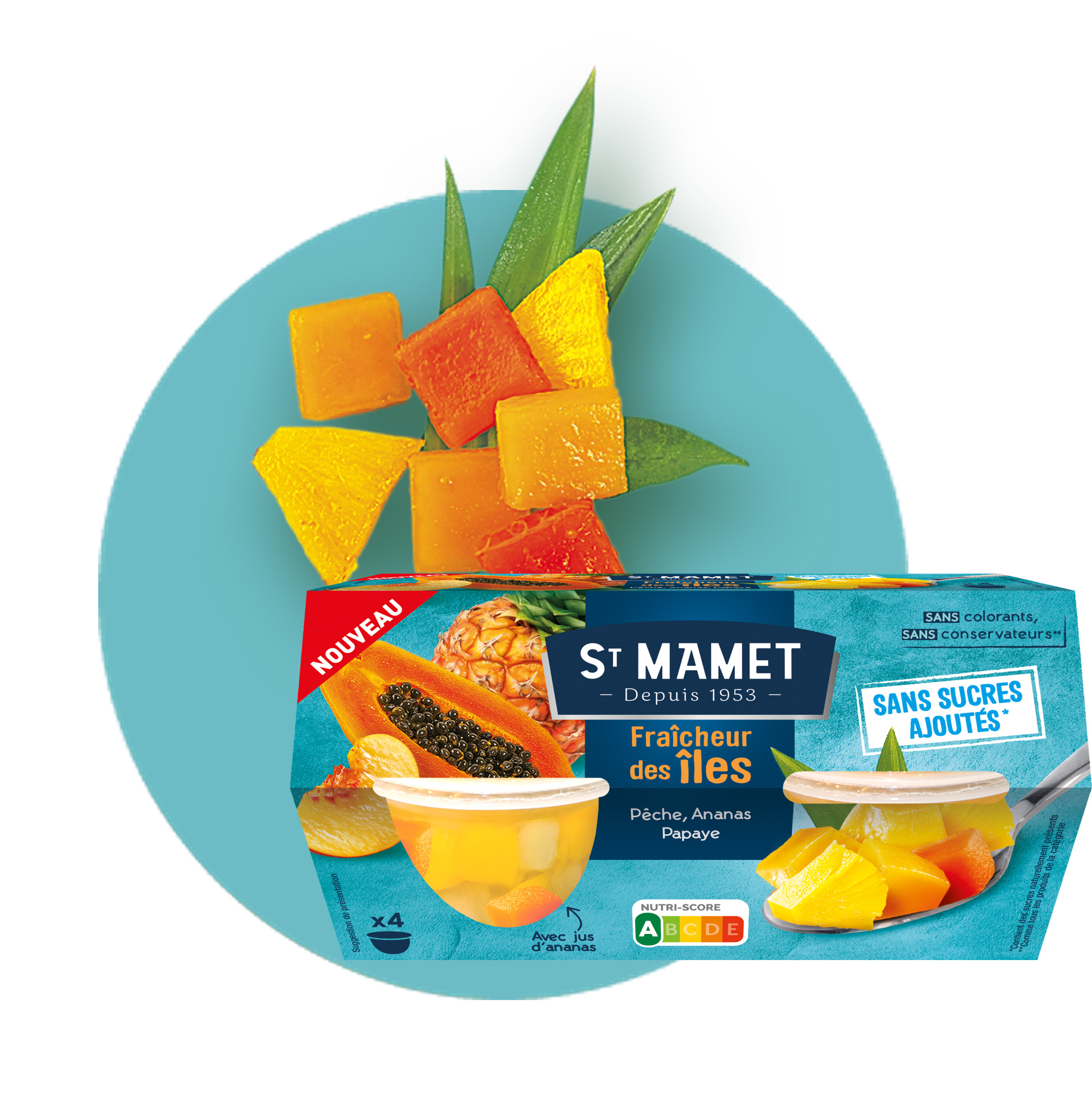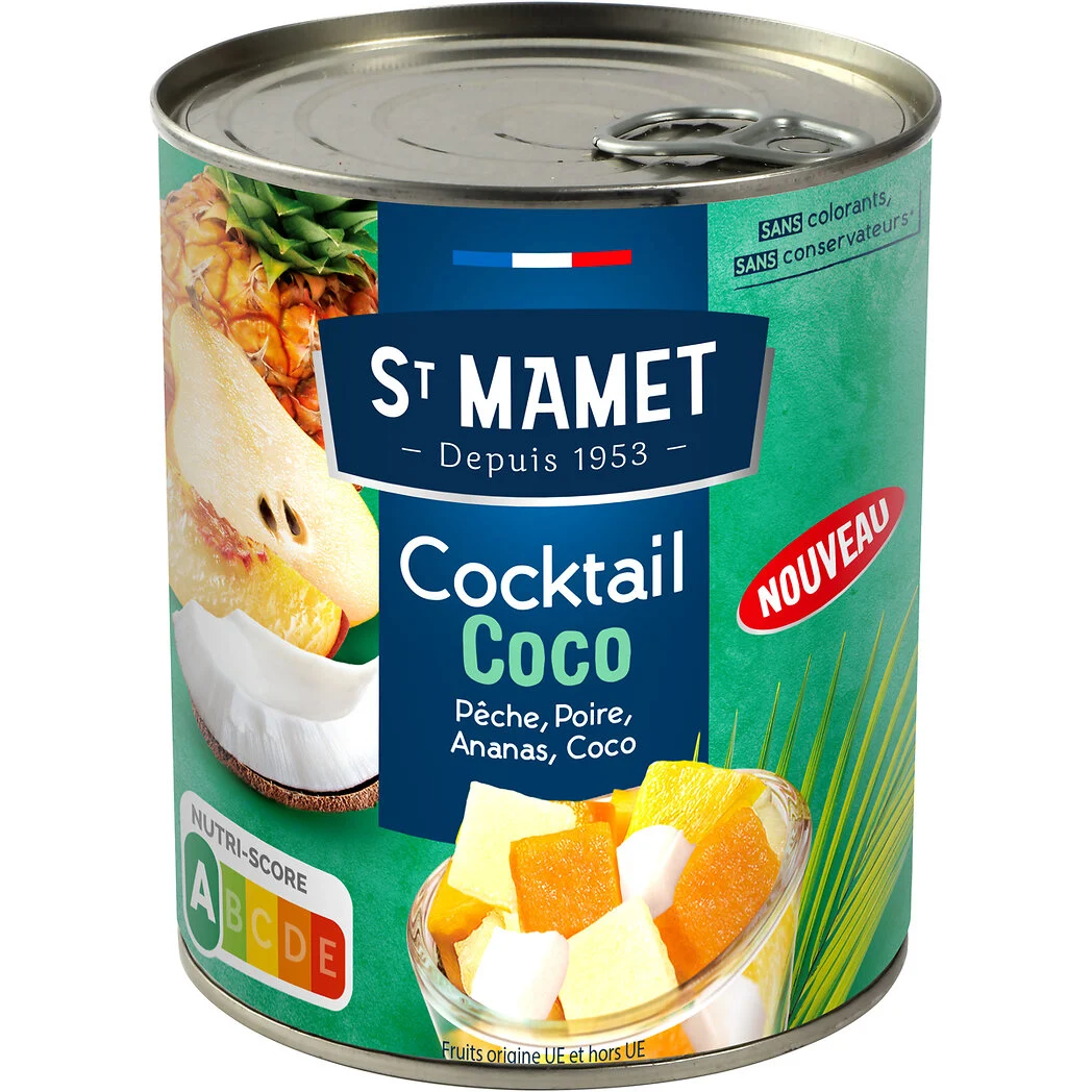Pour son anniversaire, St Mamet revisite sa recette emblématique de salade de fruits « Cocktail » avec des morceaux de noix de coco croquants. Une nouveauté Nutriscore A, produite dans les ateliers du sud de la France! Une recette idéale à déguster en famille !