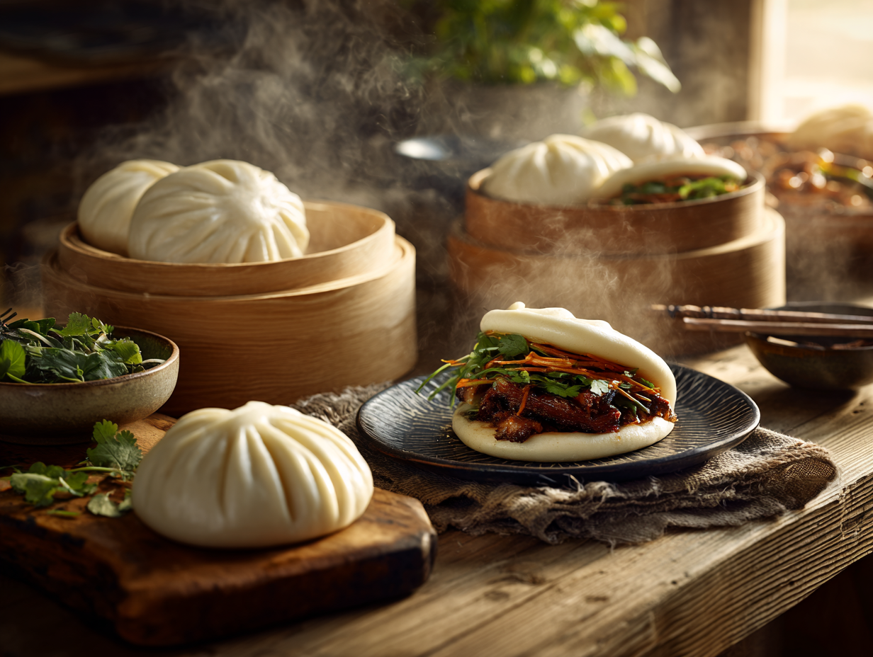 La cuisson vapeur lui confère une texture souple et moelleuse, très différente des pains cuits au four. Longtemps associé à une cuisine traditionnelle, il devient aujourd’hui un véritable produit phare dans les cuisines contemporaines.
