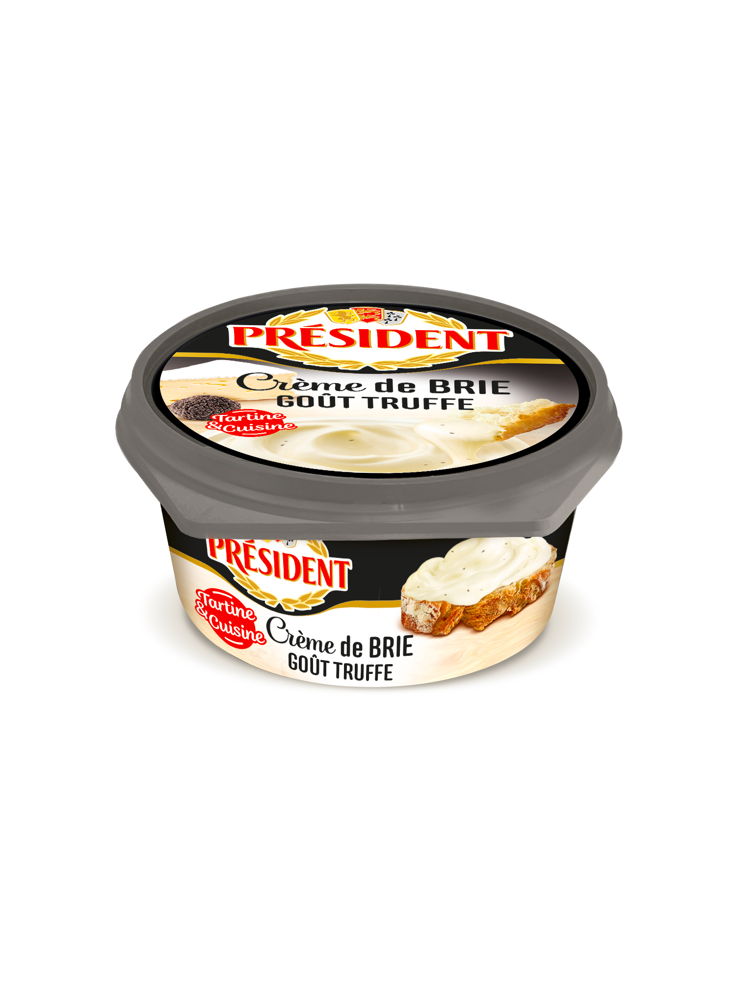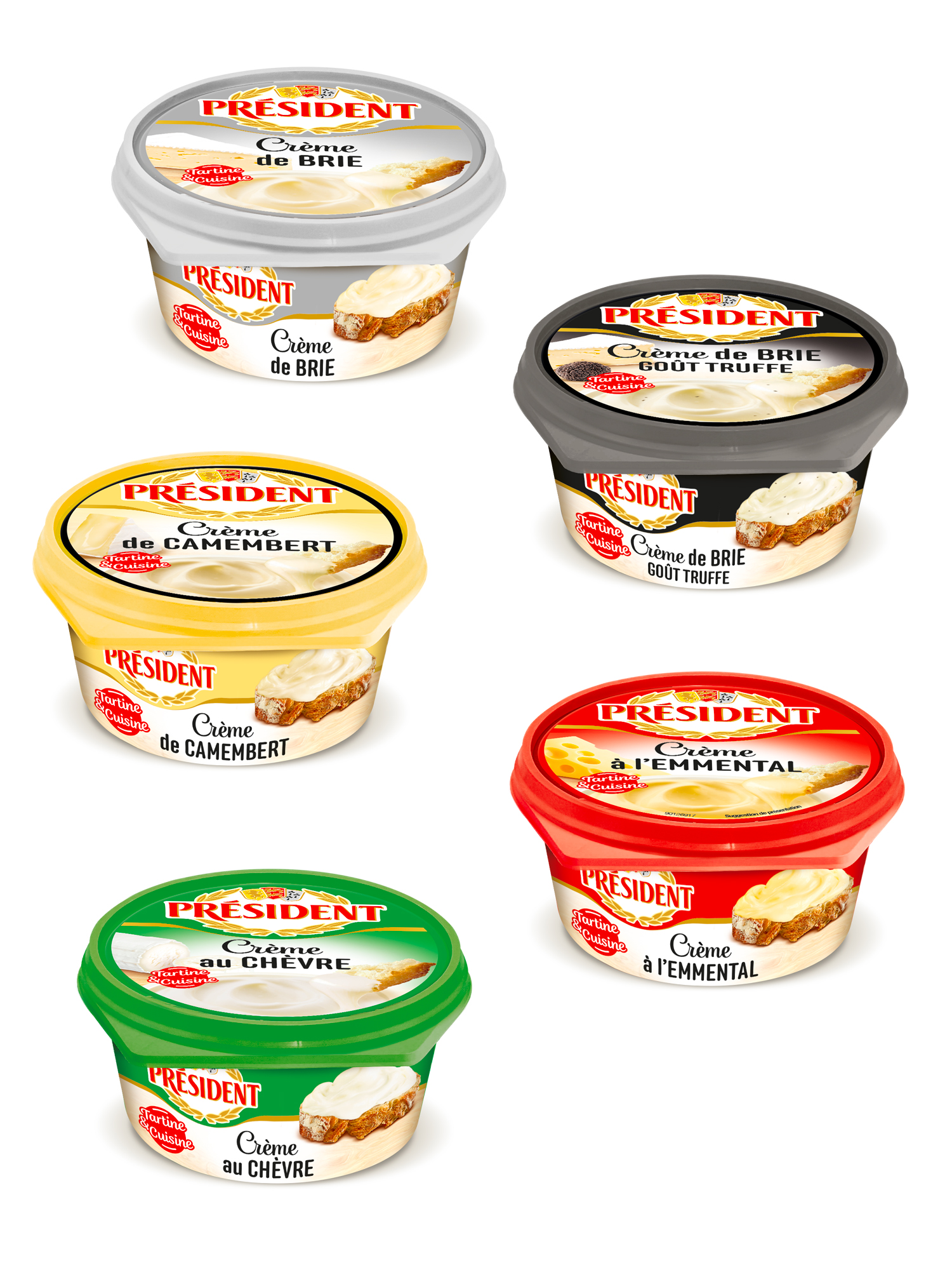 Avec cinq recettes, crème de camembert, crème d’emmental, crème de chèvre, crème de brie et crème de brie goût truffe, la marque joue la carte de la variété.