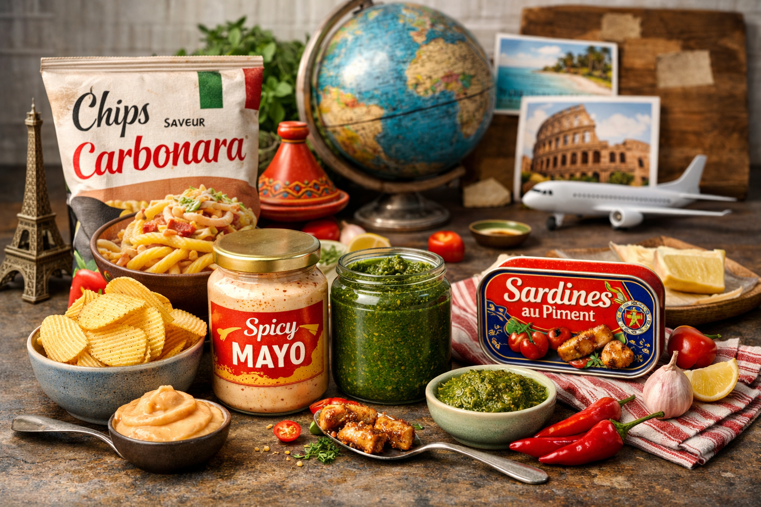 Carbonara en version chips, mayonnaise relevée, pesto twisté, sardines pimentées… Depuis quelques mois, les rayons prennent des airs de carte du monde. Et ce n’est pas un hasard.
