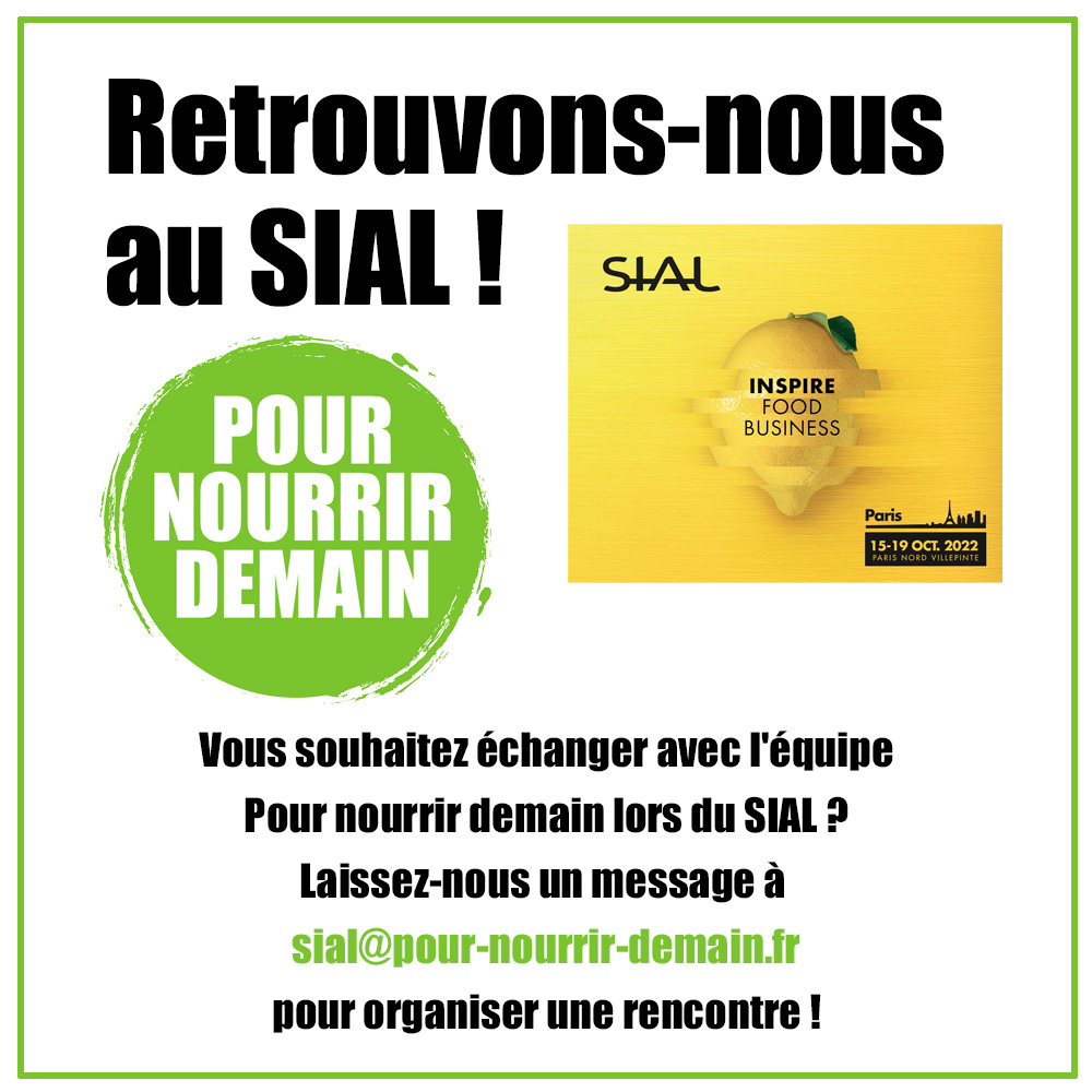 Retrouvons-nous au SIAL Paris ! Vous souhaitez échanger avec l’équipe Pour nourrir demain lors du SIAL ? Laissez-nous un message à sial@pour-nourrir-demain.fr pour organiser une rencontre !