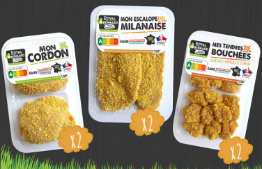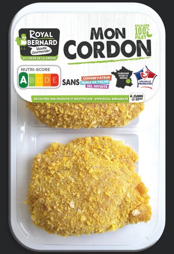 Toute la gamme panée Royal Bernard bénéficie du Nutriscore A et d’excellentes notes sur Yuka : 90/100 pour les escalopes milanaises et tendres bouchées, 84/100 pour les cordons bleus.