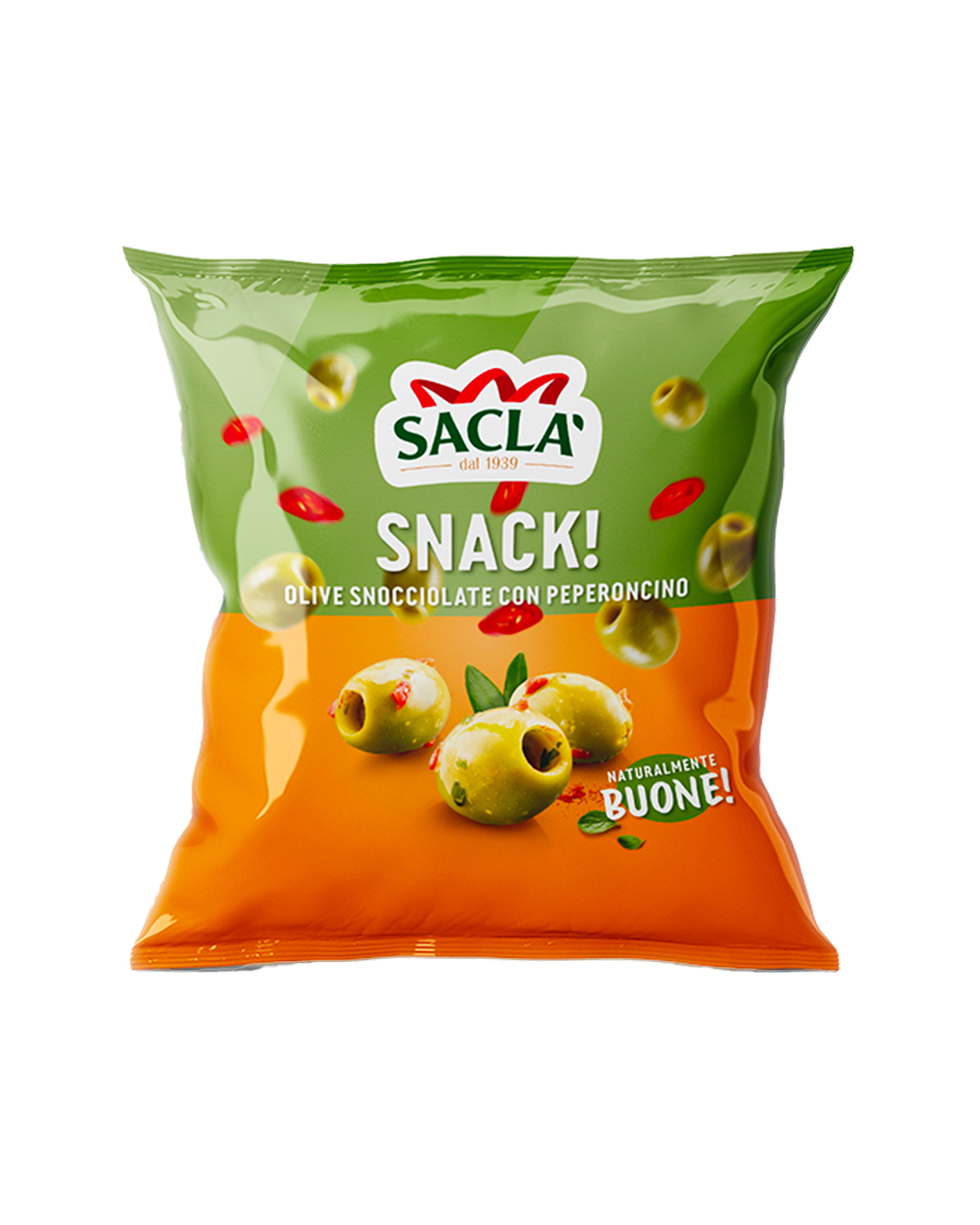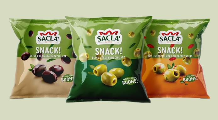 Saclà bouscule ici les habitudes autour de l’olive, en la positionnant comme un snack salé, pratique, à consommer à la volée.