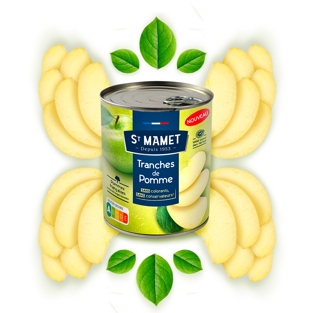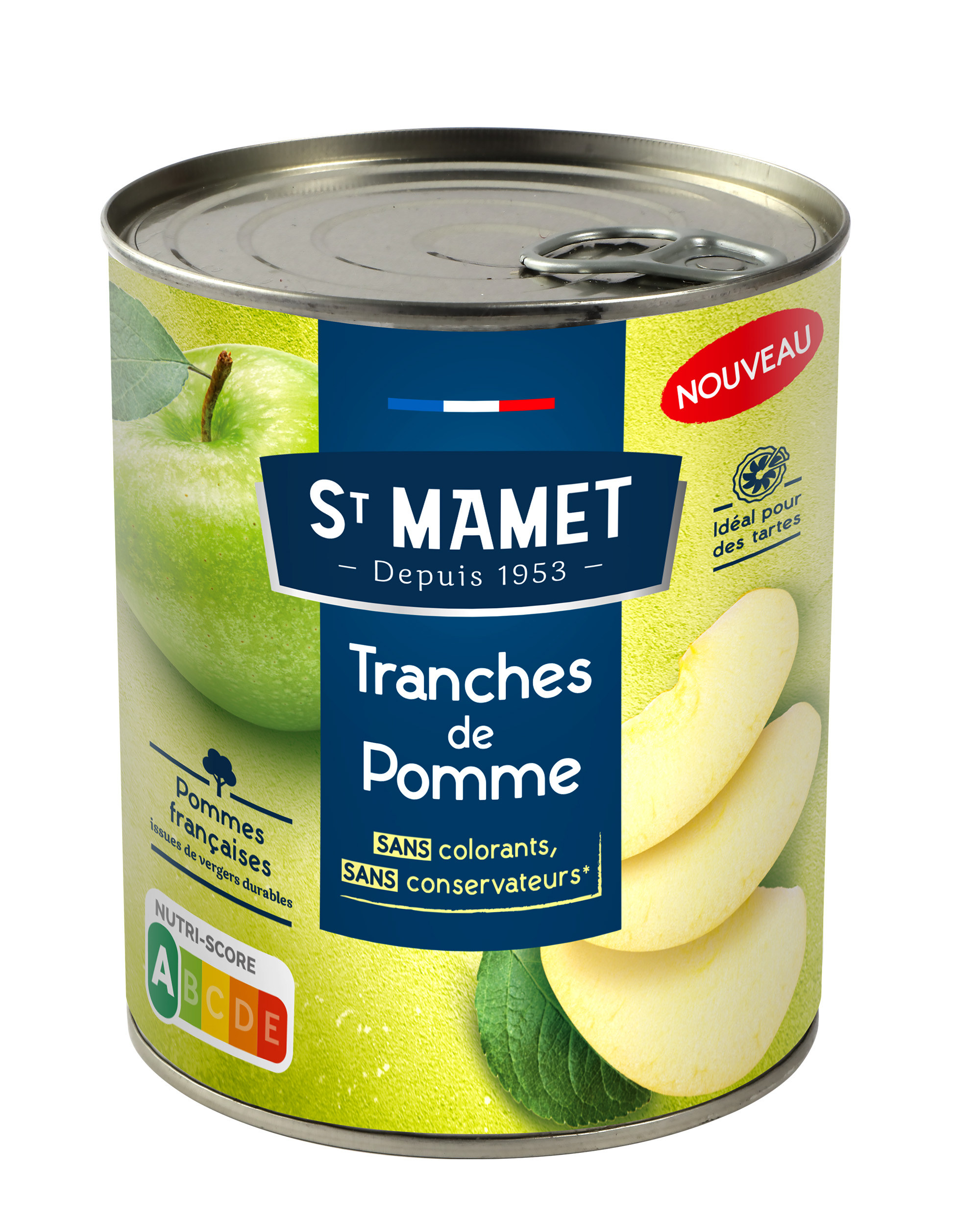 Saint Mamet vient de lancer Tranches de Pommes : les pommes sont déjà épluchées et découpées en lamelles pour réaliser rapidement des desserts comme une tarte aux pommes mais pas seulement.