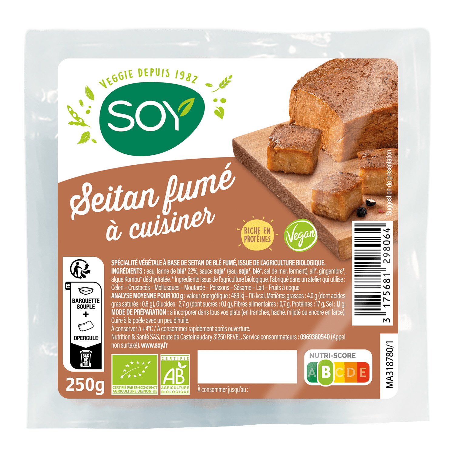 Depuis plus de 40 ans, SOY défend les bienfaits de l’alimentation végétale bio pour la santé, l’environnement et les hommes. Avec le seitan fumé, SOY continue d’innover en offrant des produits délicieux et engagés.