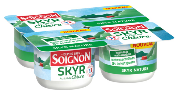 La marque Soignon, célèbre pour ses produits à base de lait de chèvre, innove encore en lançant le tout premier skyr au lait de chèvre sur le marché français. Deux déclinaisons sont disponibles : nature et myrtille.