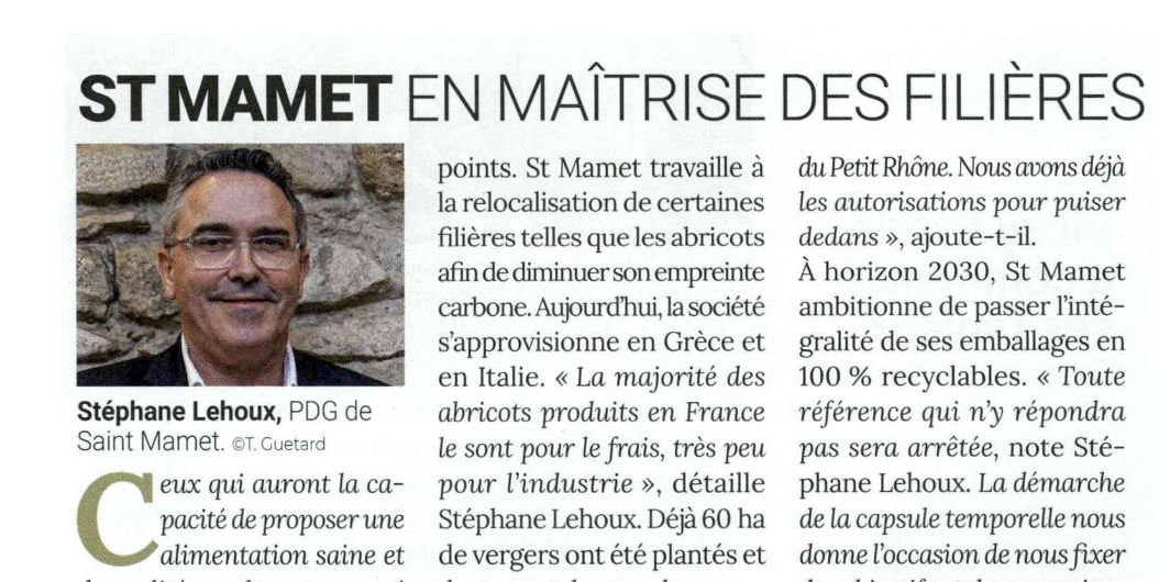 « Ceux qui auront la pacité de proposer une alimentation saine et de qualité sont les acteurs qui maîtriseront leurs filières », assure Stéphane Lehoux, PDG de St Mamet. La société indique que l’initiative de Pour nourrir demain lui a fait ouvrir les yeux sur plusieurs points. (…) « La démarche de la capsule temporelle nous donne l’occasion de nous fixer des objectifs et de poursuivre nos efforts. Mais il ne faut pas que les industries agroalimentaires françaises se flagellent pour autant. Nous sommes en avance par rapport à beaucoup de pays. »