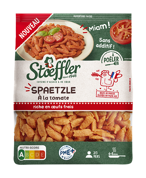 Stoeffler continue de revisiter la tradition alsacienne en proposant des spaetzle à la tomate, parfaits pour séduire petits et grands.