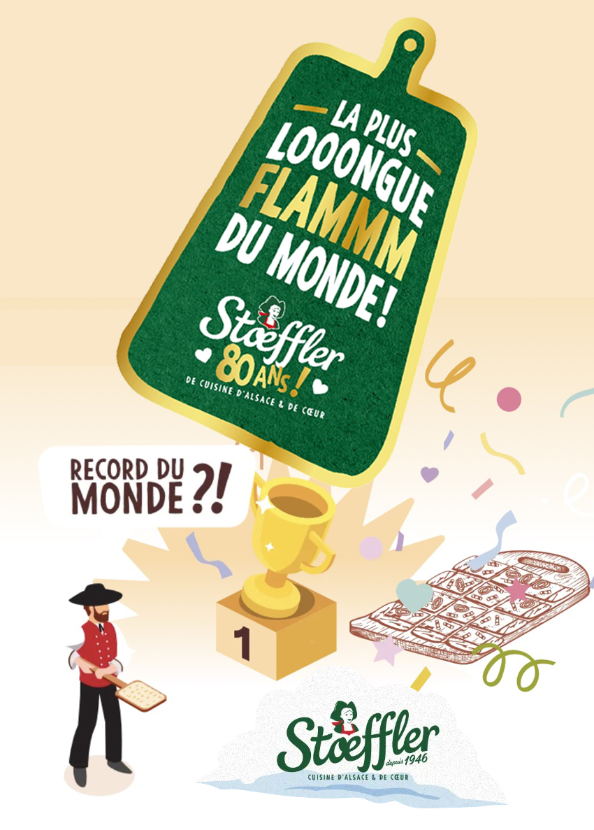 Le 22 mars 2026, au stade de la Meinau à Strasbourg, la marque tentera d’établir le record du monde de la plus longue tarte flambée, actuellement fixé à environ 48 mètres.