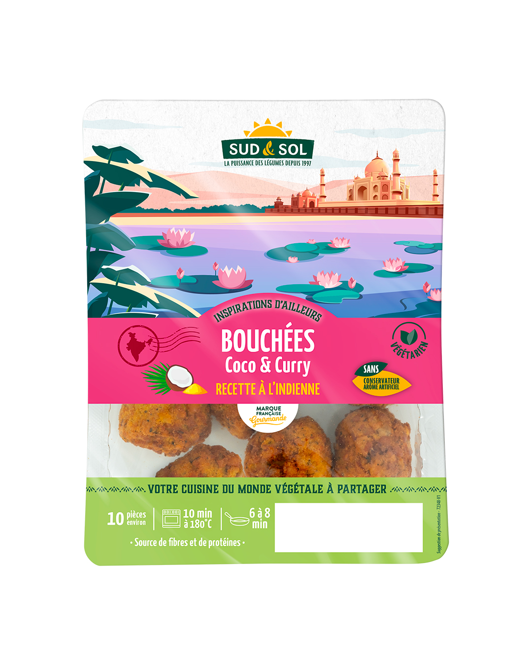 Puis cap sur l’Asie avec des gyozas frits aux légumes, clin d’œil à la cuisine thaï, et des bouchées coco & curry qui rappellent les effluves indiens.
