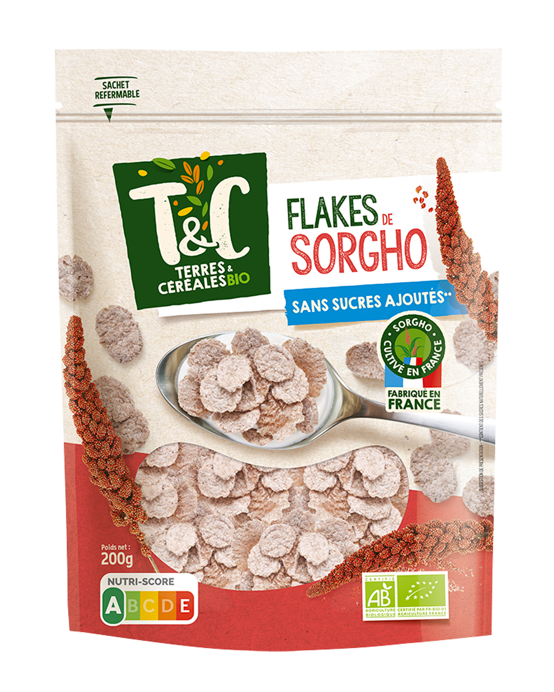 Terres & Céréales enrichit sa collection de céréales avec une proposition originale : des flakes à base de sorgho, toujours bio, toujours fabriqués en France.