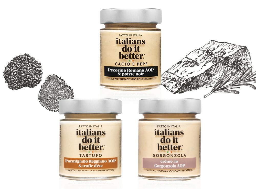 Italians do it better lance 3 nouvelles recettes de sauces à la crème et aux fromages italiens AOP, sans conservateurs, sans sucres ajoutés ni colorants. Ces recettes très gourmandes dignes des trattorie italiennes ont nécessité plusieurs années de recherche afin d’avoir la liste d’ingrédients parfaite, une véritable obsession pour la marque, depuis sa création en 2016.