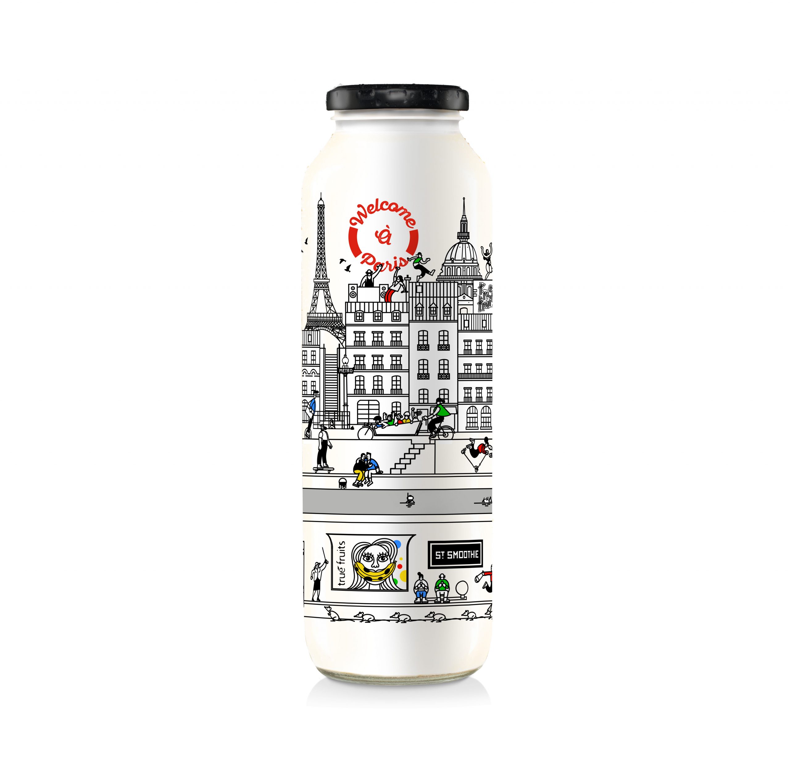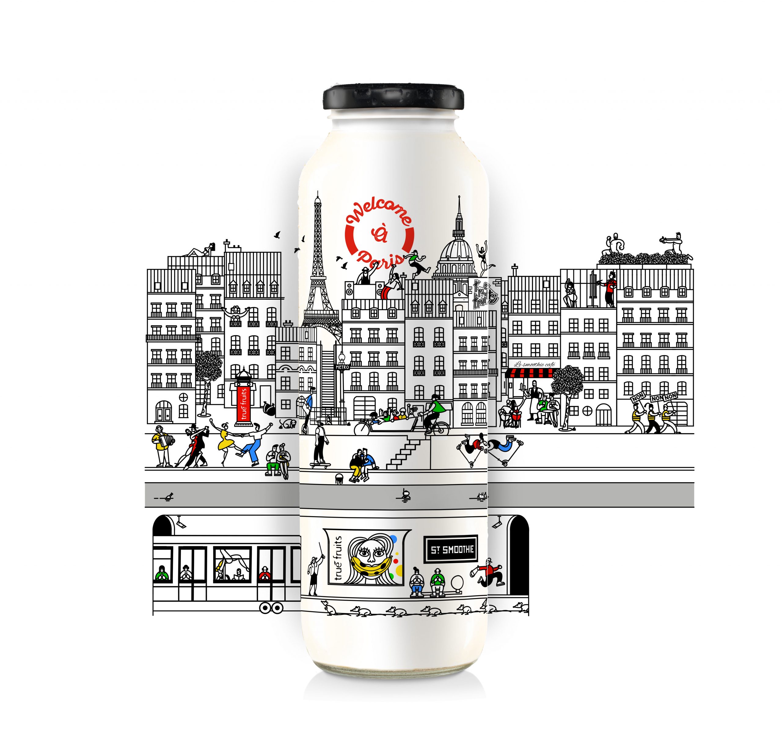 Mais true fruits ne s’arrête pas là : la bouteille est accompagnée d’un jeu « où est Charlie » spécial Paris, histoire de patienter dans les transports ou les longues files d’attente.