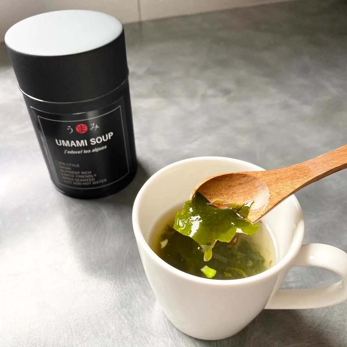 Umami Soup insite sur la qualité premium des produits. Leurs algues sont sélectionnées par un artisan japonais ayant 50 ans d’expériences. Sans assaisonnement chimique, colorants, conservateurs, arômes ni édulcorants chimiques.