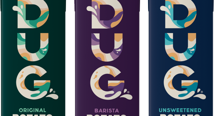 À base de pommes de terre, d’huile de colza, de protéines de pois et de fibres de chicorée, les produits DUG sont végans, sans gluten, sans sucres ajoutés, sans lactose et aussi sans soja. Le lait de pommes de terre se décline en trois produits : original, non sucrés et barista.