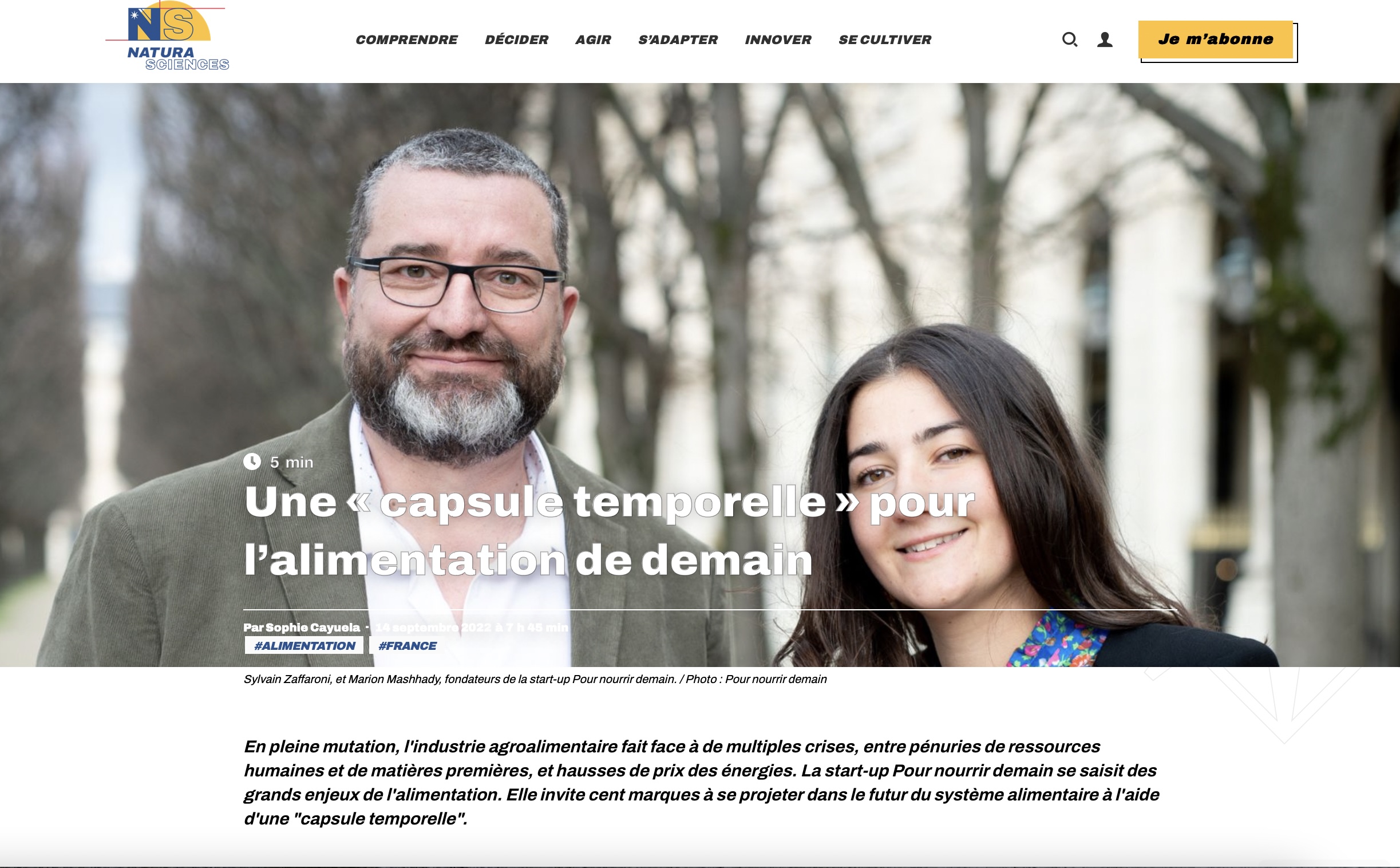 En pleine mutation, l’industrie agroalimentaire fait face à de multiples crises, entre pénuries de ressources humaines et de matières premières, et hausses de prix des énergies. La start-up Pour nourrir demain se saisit des grands enjeux de l’alimentation. Elle invite cent marques à se projeter dans le futur du système alimentaire à l’aide d’une « capsule temporelle ».