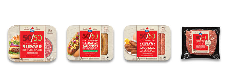 Les produits Maple Leaf 50/50 sont lancés sous forme de hamburger, de saucisses à dîner, de saucisses à déjeuner.