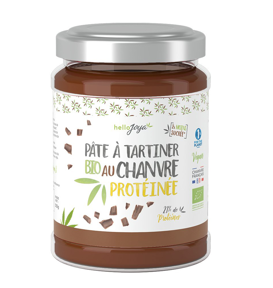Deux pâtes à tartiner ont rejoint la gamme miam d’Hello Joya. À la différence des autres pâtes à tartiner du marché, elles ont pour ingrédient principal le chanvre, et non le sucre, et sont deux fois moins sucrées que leurs concurrentes.