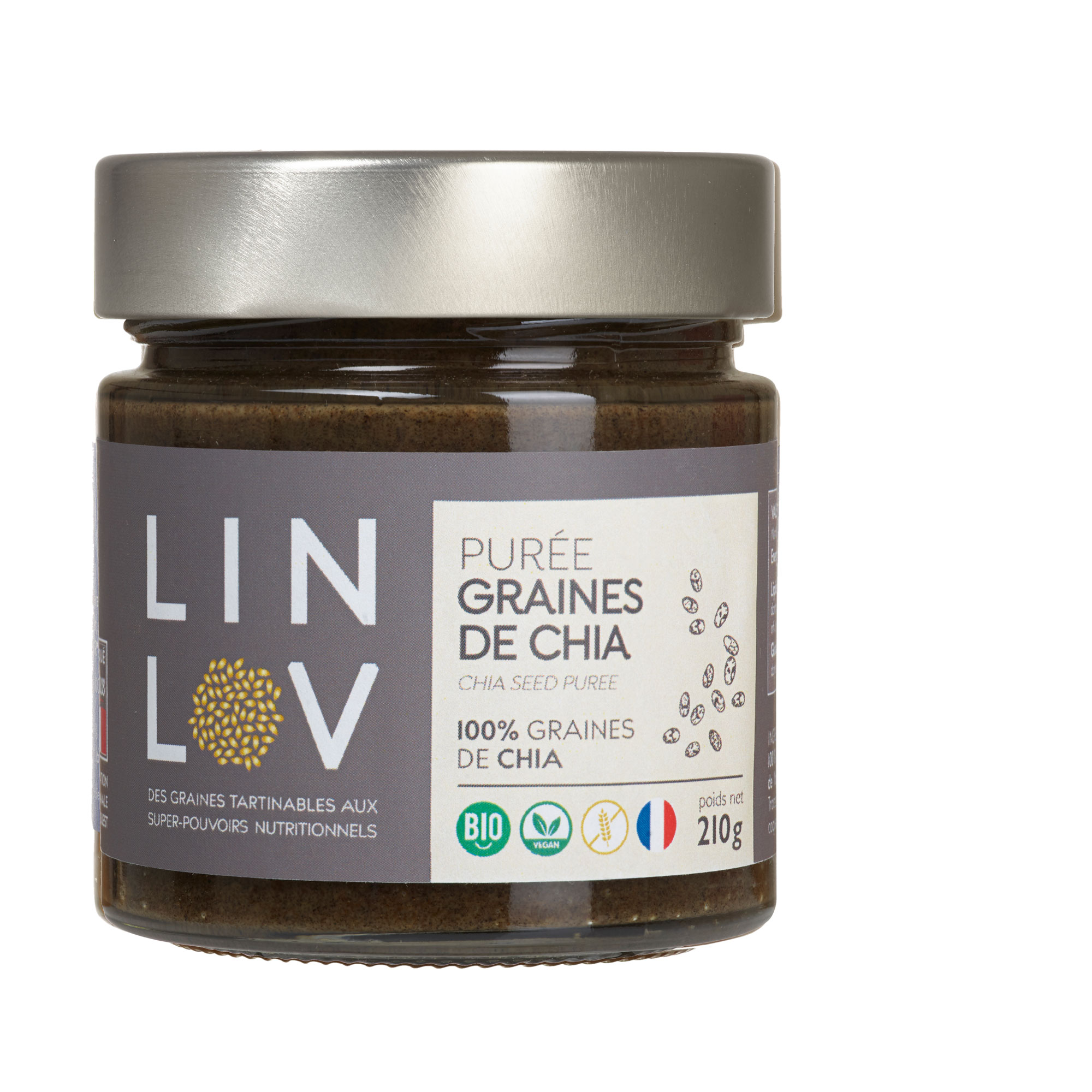 Purée 100% graines de chia, une aide culinaire originale et unique, à base de graines de chia juste broyées à froid sur les meules en pierre. Très riche en Protéines, en Oméga-3, et également en Oméga-6, sans compter les fibres, vitamines et minéraux.