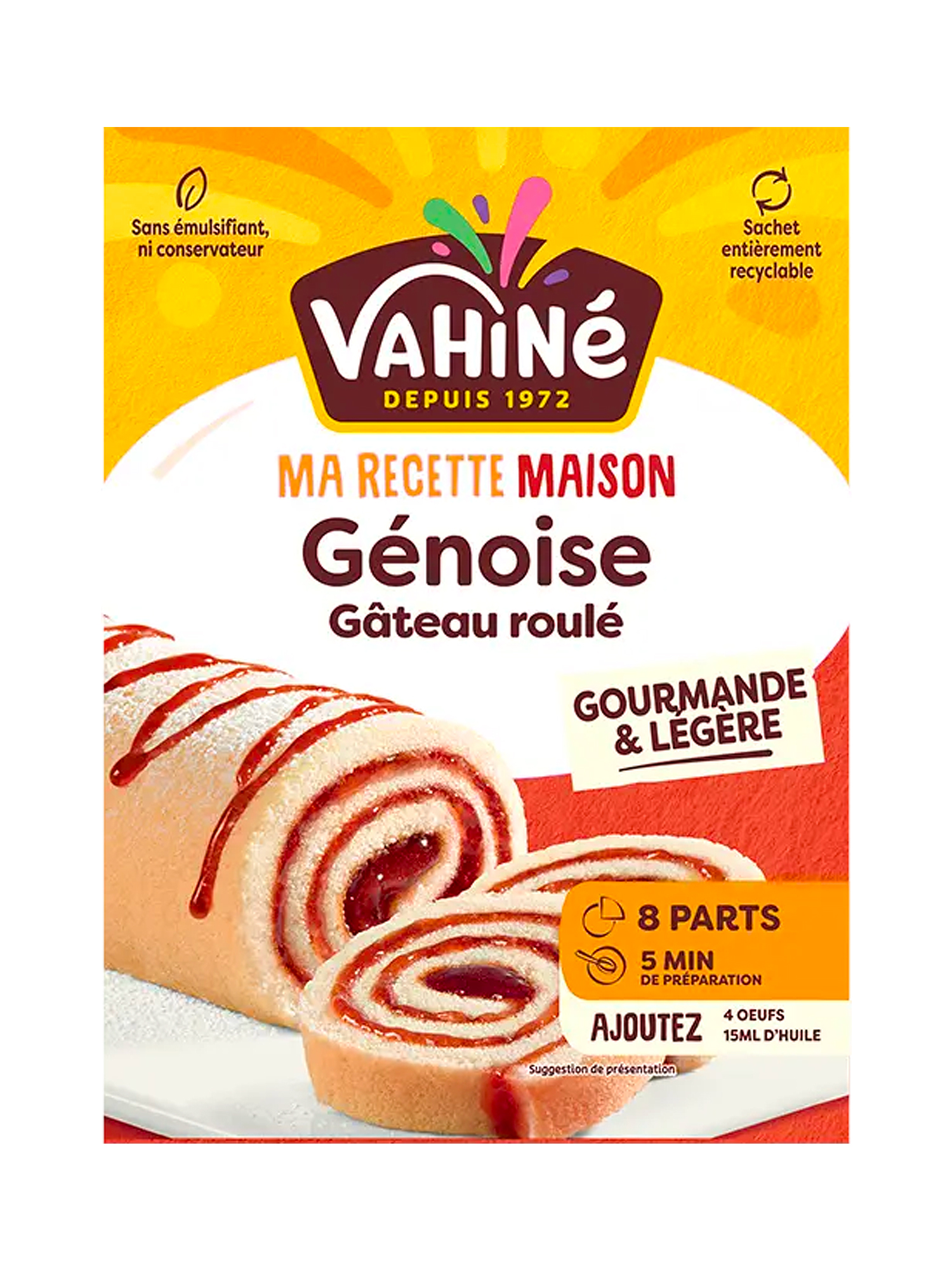 Vahiné simplifie la pâtisserie maison avec sa préparation pour génoise, pensée pour réaliser des biscuits roulés d’une texture ultra moelleuse.