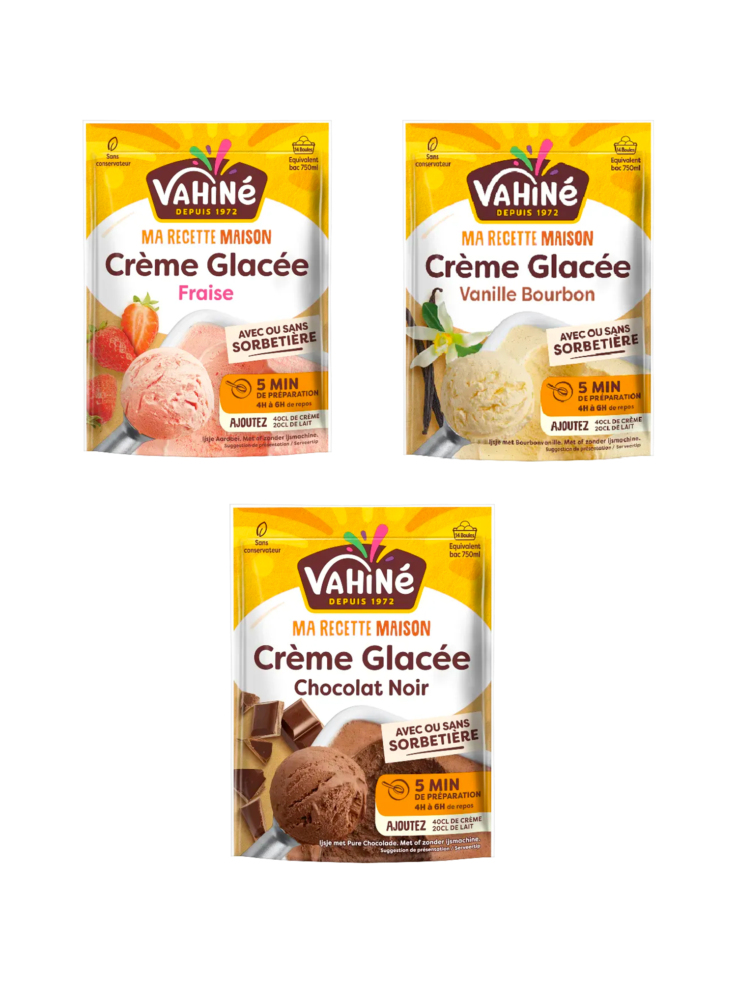 Vahiné mise sur la simplicité pour prolonger l’été à domicile. La marque propose trois références à mélanger à la maison : fraise, vanille Bourbon et chocolat noir.