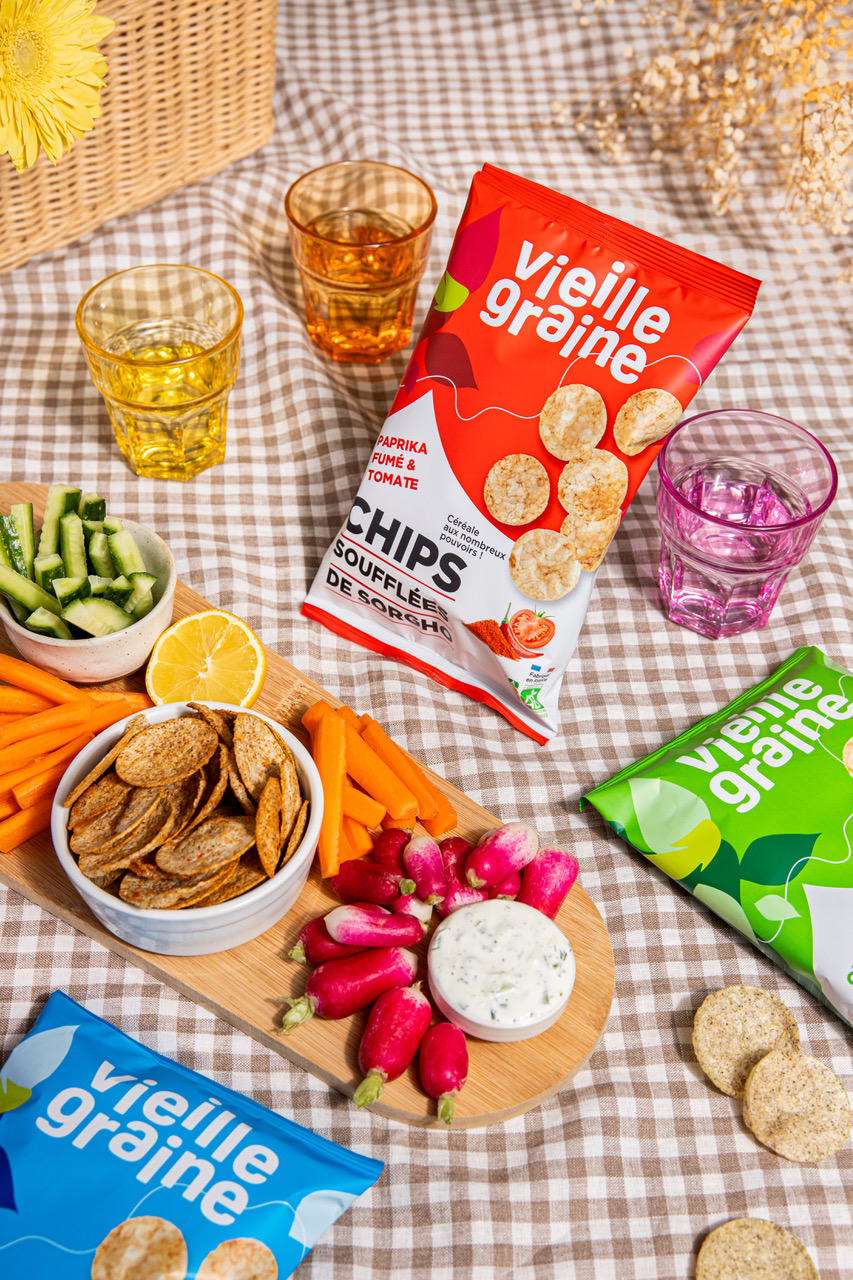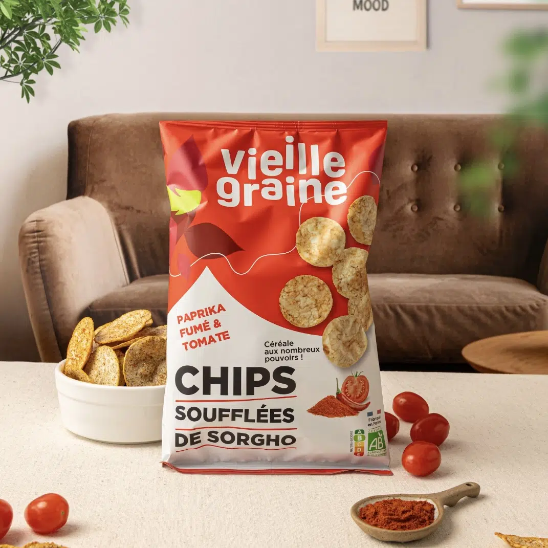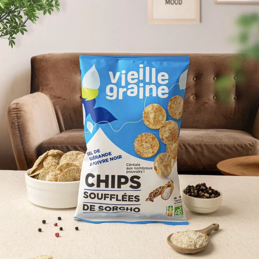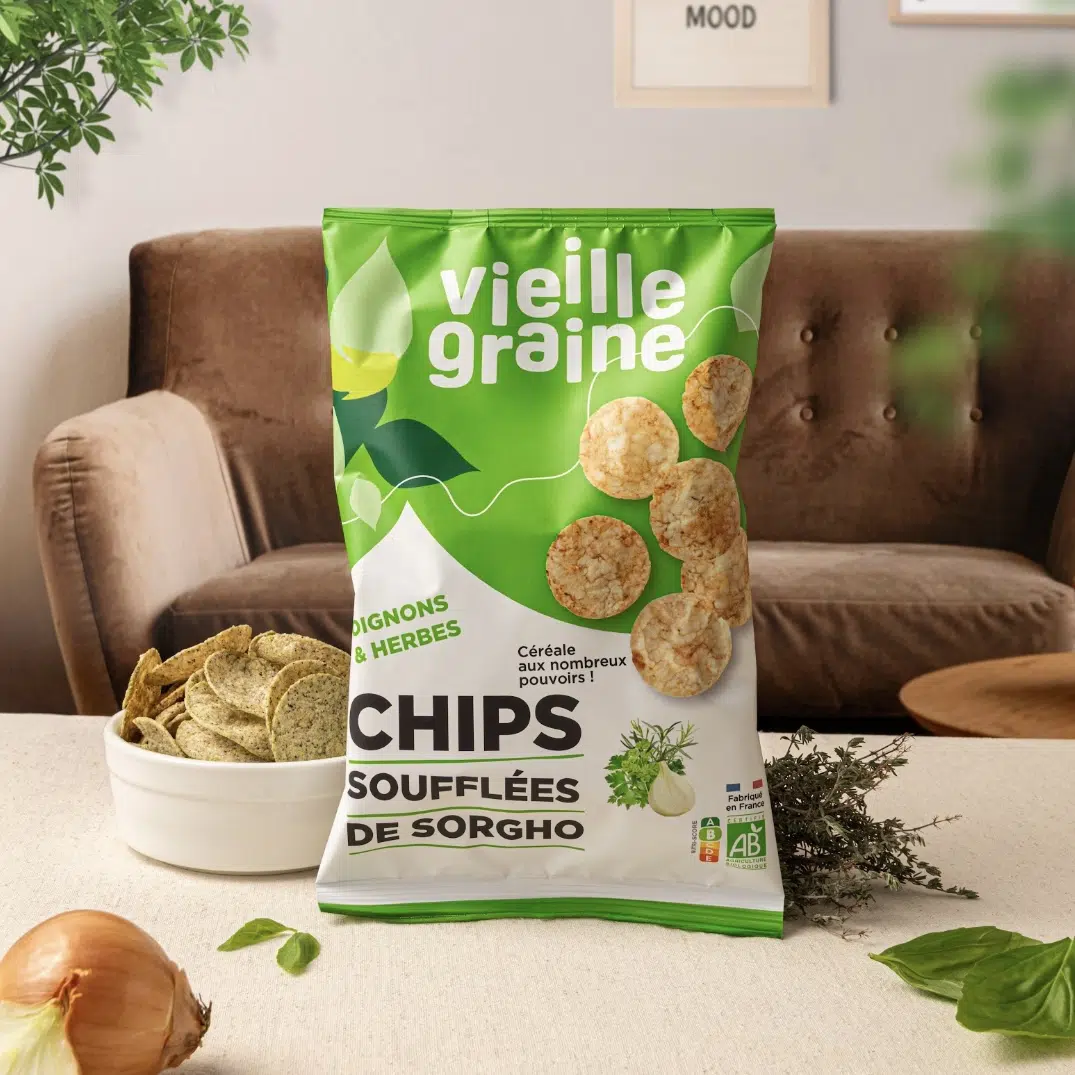 Vieille Graine s’aventure du côté du sorgho avec une gamme de chips soufflées qui promettent légèreté et croustillance.
