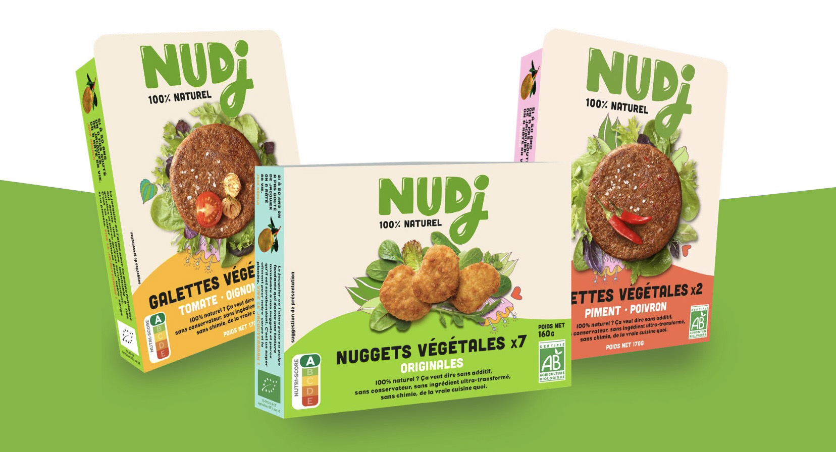 Nudj, jeune marque engagée dans le végétal, mise sur une approche plus brute et naturelle, en mettant à l’honneur des ingrédients simples et bio. Loin des substituts ultra-transformés, elle revendique une cuisine végétale plus authentique.