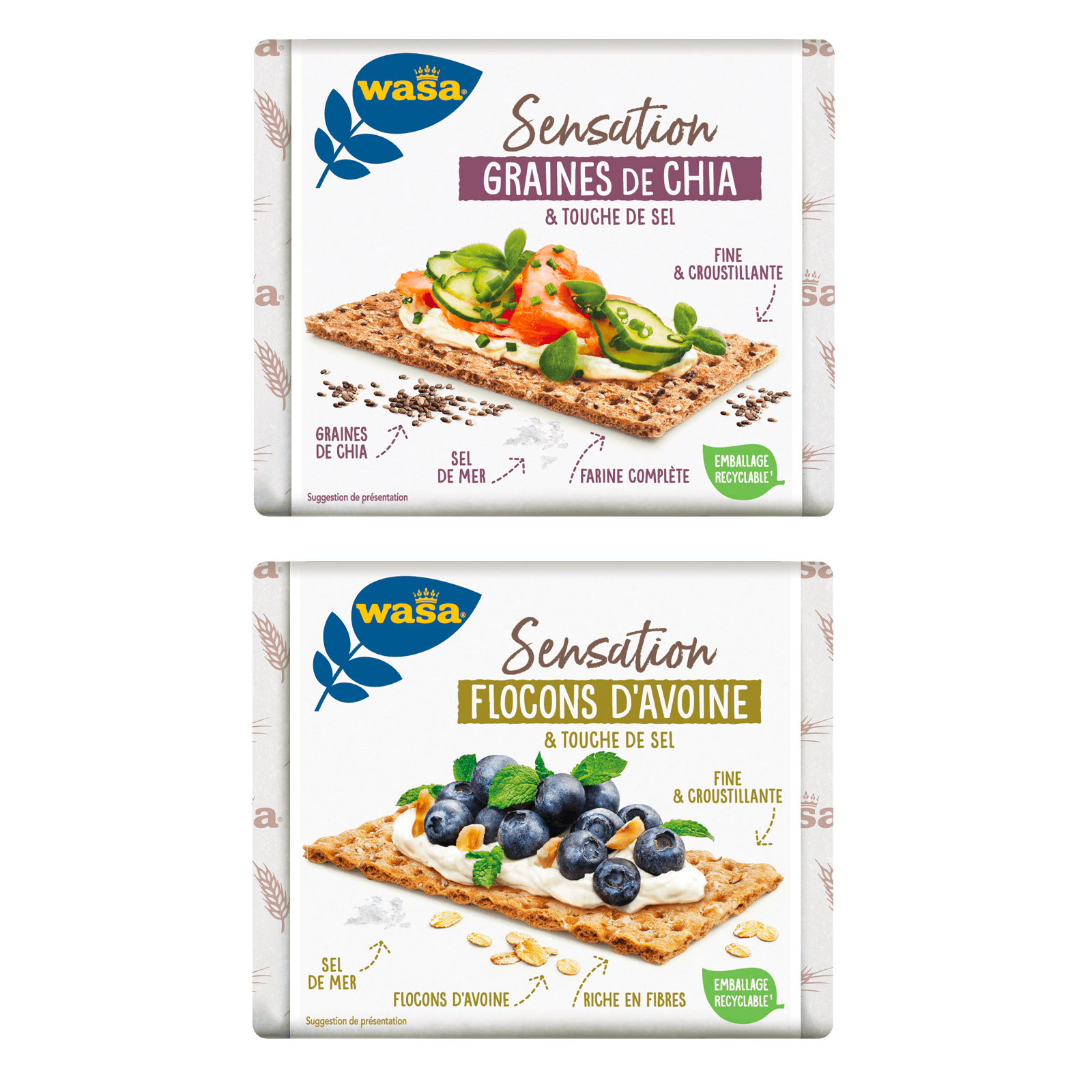 Wasa continue d’explorer les textures croustillantes avec sa gamme Sensation, qui joue sur l’association de farines complètes, de graines et d’une pointe de sel. L’une des nouveautés mise sur le seigle et les graines de chia, l’autre sur l’avoine et ses flocons.
