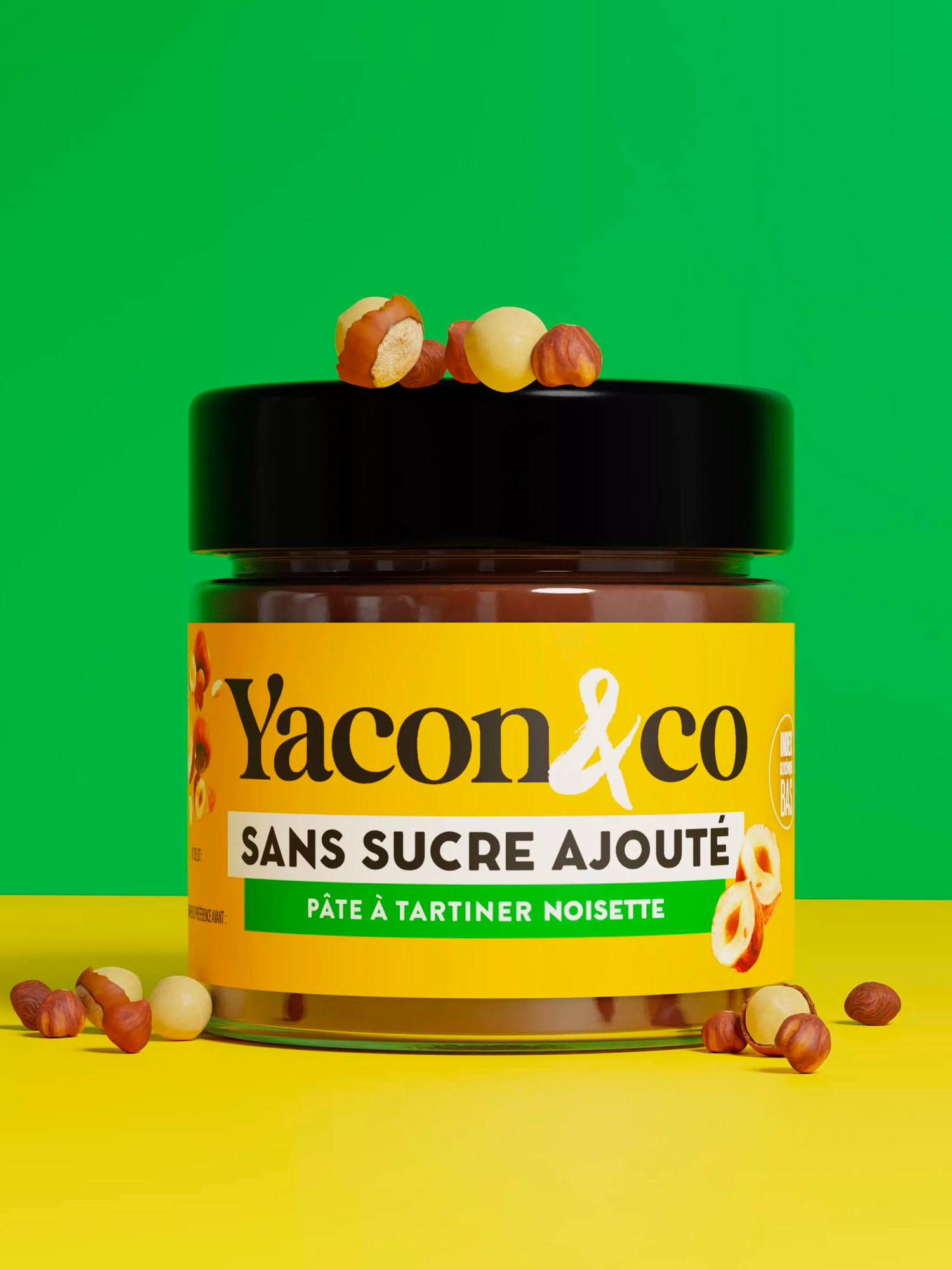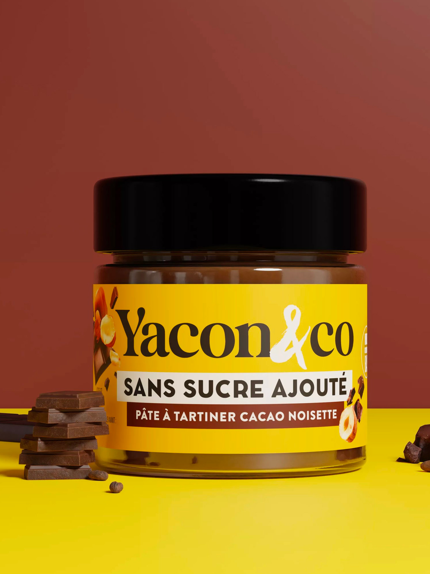 Yacon&co poursuit son travail autour du yacon en l’intégrant dans une pâte à tartiner noisette, sans sucre ajouté ni édulcorant.